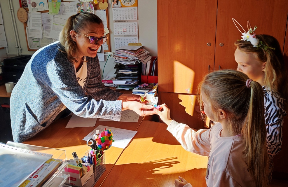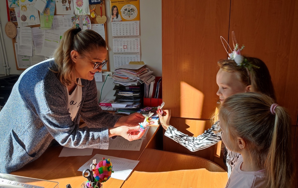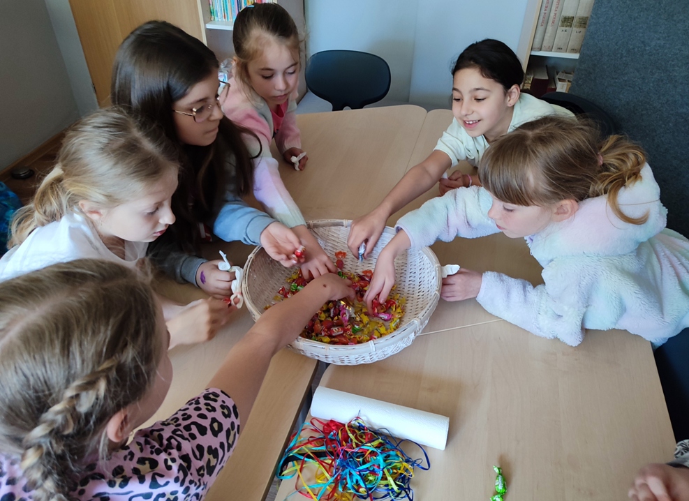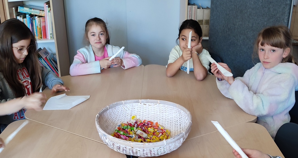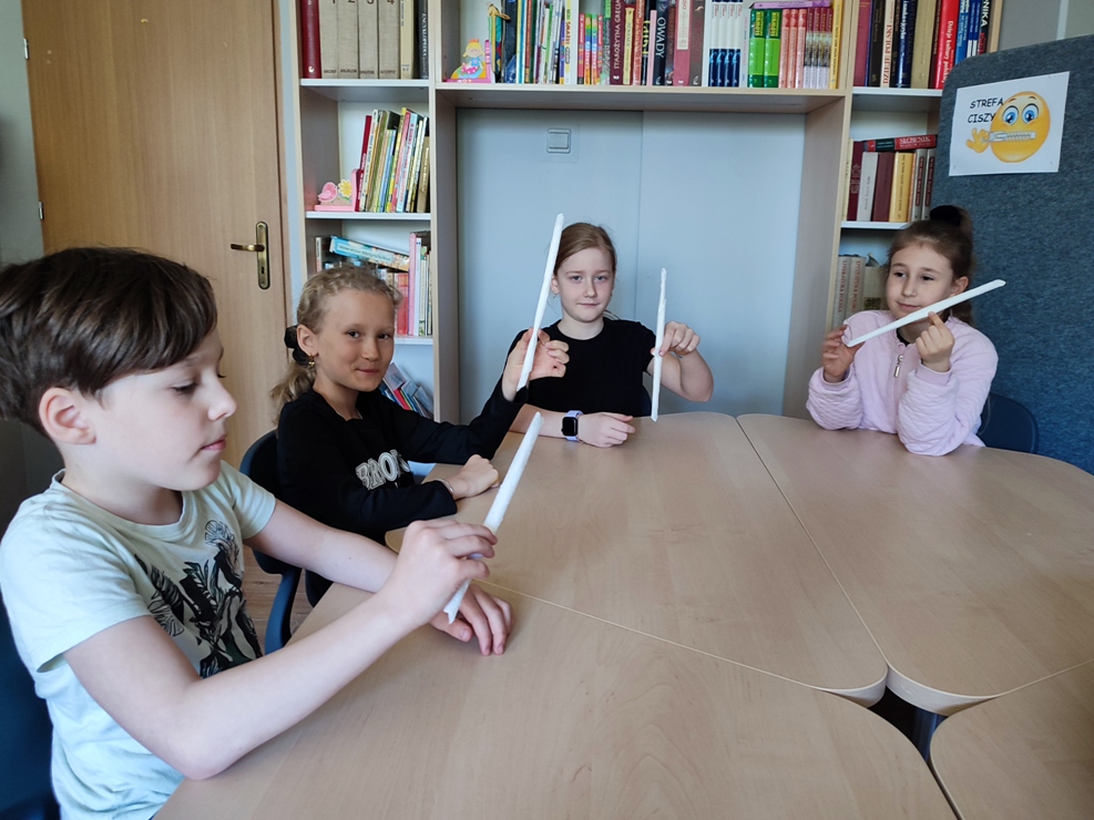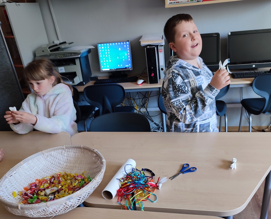 W środę podczas przerw, na szkolnych korytarzach, panował przedświąteczny gwar i rwetes. Niektórzy uczniowie z klas 1-3 w bibliotece znaleźli spokój i ciszę, ale także ciekawe zajęcie. Robiliśmy malutkie, wesołe wielkanocne zajączki z papieru. Z małych kwadratów ręcznika papierowego lub serwetki, gumki recepturki i kolorowej wstążeczki wyszły dzieciom śliczne, maleńkie zajączki, które można samodzielnie wykonać w domu. Jeszcze tylko słodki cukierek do brzuszka zajączka i można nim obdarować innych. Dzieciom bardzo się te przedświąteczne warsztaty podobały, a w bibliotece miło i kreatywnie spędziły czas podczas przerw. Wesołych świąt!