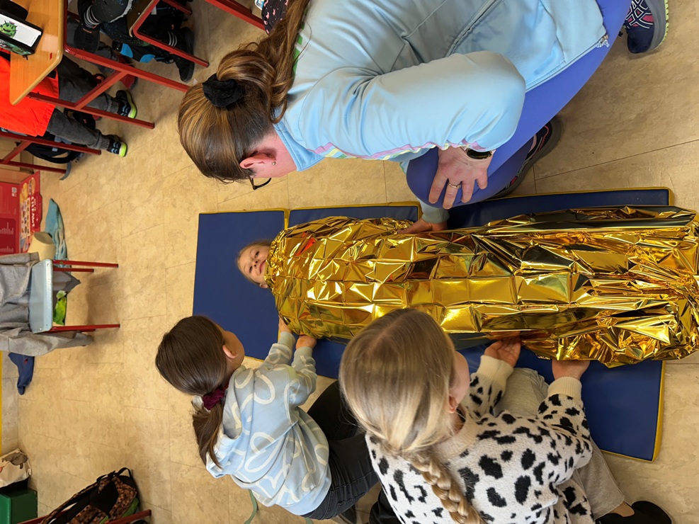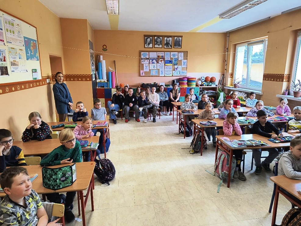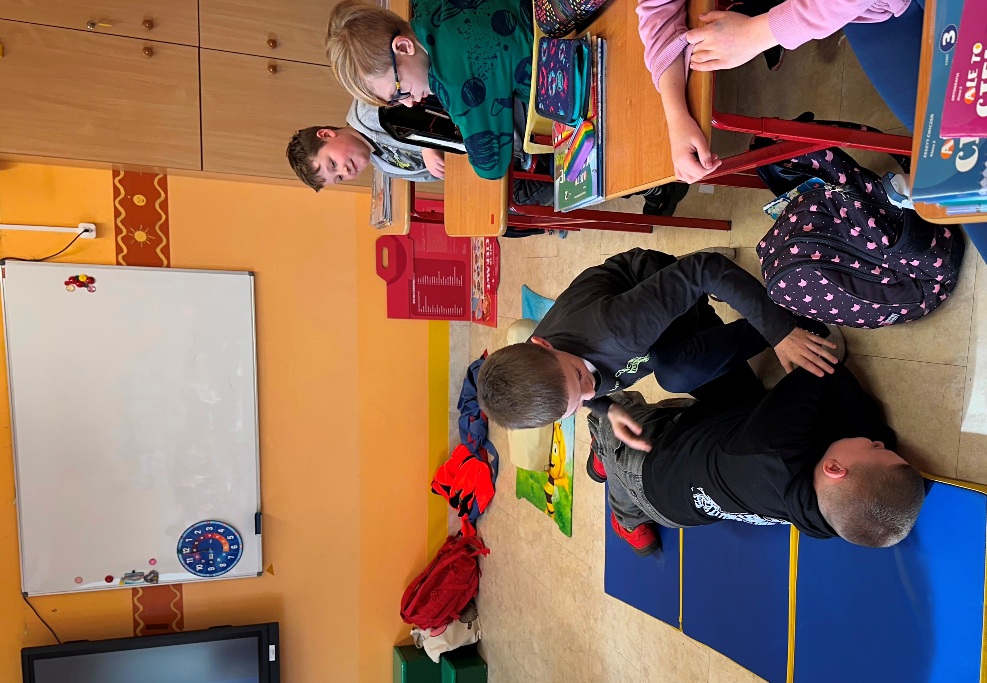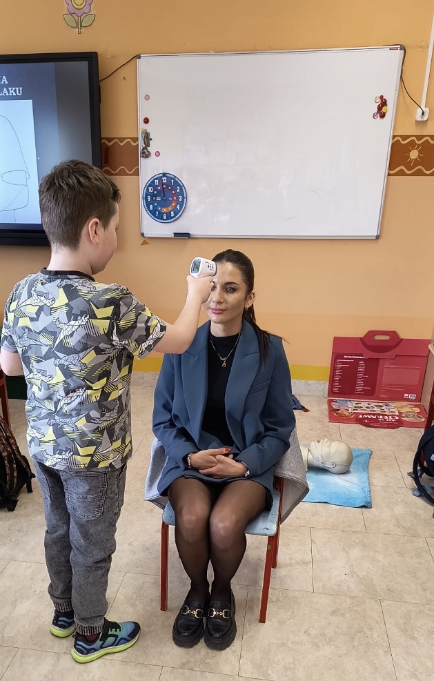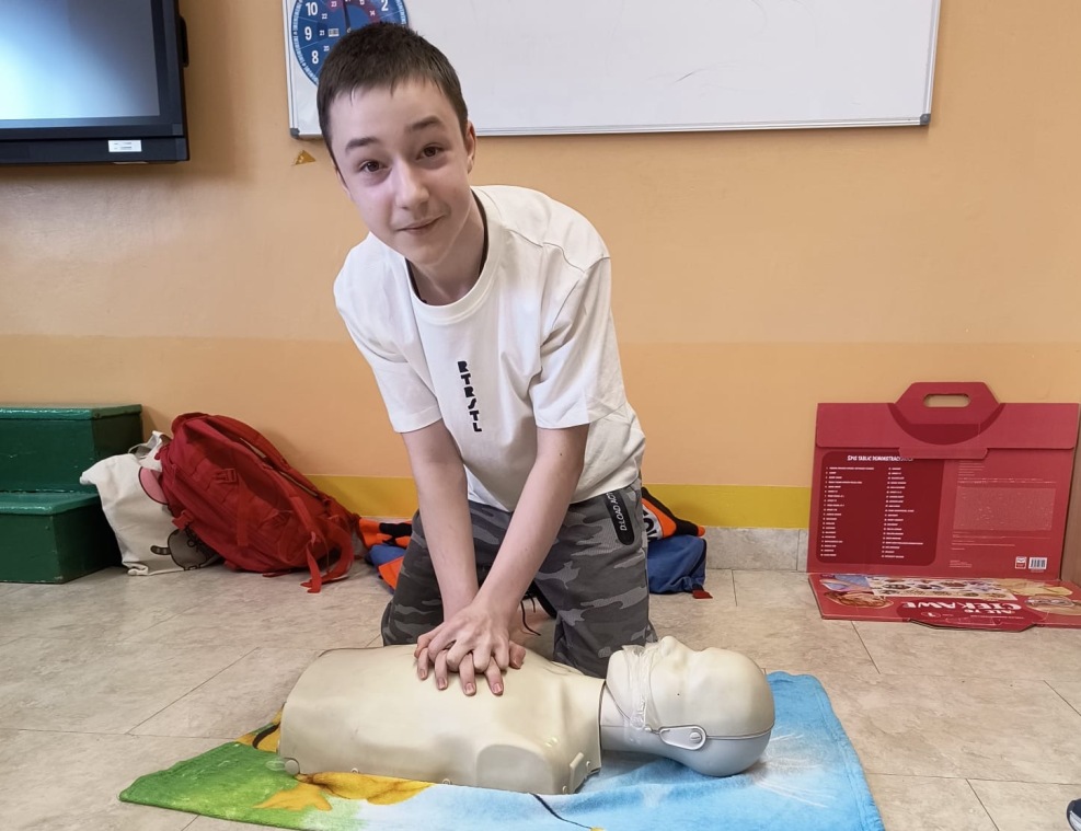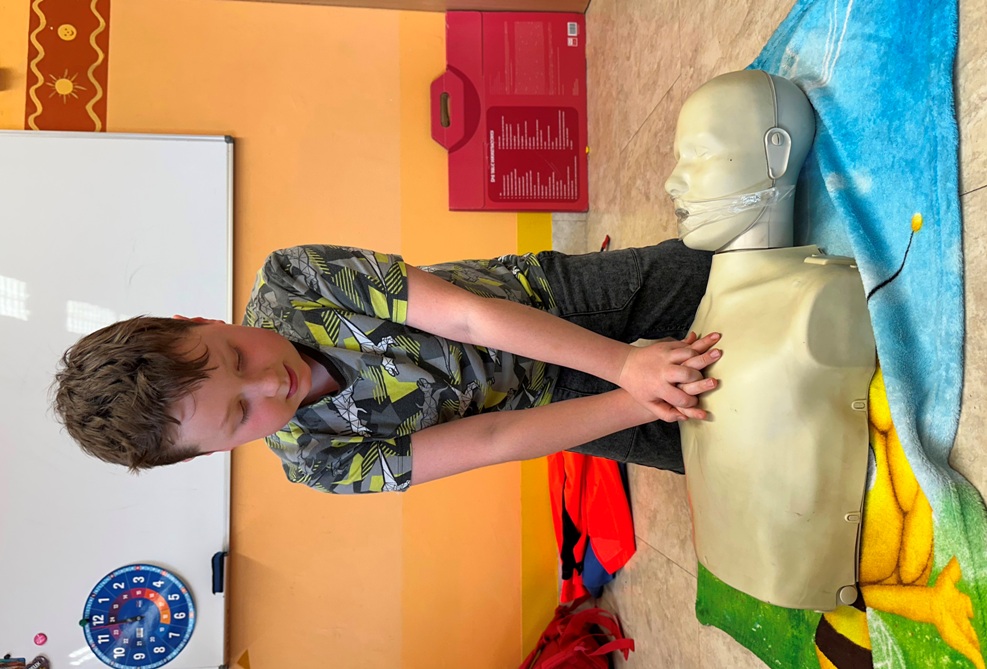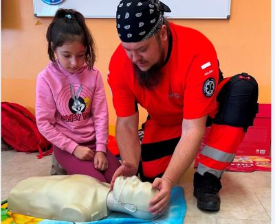 W marcu uczniowie klasy 2a i 5a w ramach innowacji pedagogicznej z zakresu pierwszej pomocy mieli okazję spotkać się z ratownikiem medycznym Panem Łukaszem Klaczką. W trakcie spotkania dzieci zostały zapoznane z pracą ratownika medycznego i sposobami pomocy w różnych sytuacjach wymagających interwencji służb medycznych. Uczniowie mieli możliwość ćwiczyć na fantomie do pierwszej pomocy z czego bardzo chętnie skorzystali. Ponadto mogli wykonać opatrunki medyczne, zmierzyć temperaturę, obejrzeć resuscytator – worek samorozprężalny do sztucznej wentylacji (worek AMBU), który stosowany jest w ratownictwie oraz w szpitalach. Na zakończenie spotkania dzieci zadawały pytania panu ratownikowi.