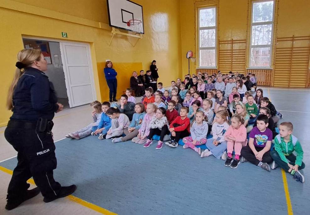 Już wkrótce rozpoczną się wyczekiwane przez uczniów ferie zimowe. W trosce o bezpieczeństwo dzieci zorganizowano w szkole spotkanie z policjantką Komisariatu w Ozimku panią Justyną Hamelą. Policjantka przypomniała uczniom o najważniejszych zasadach dotyczących bezpieczeństwa podczas zimowych zabaw oraz życzyla wszystkim udanych ferii.