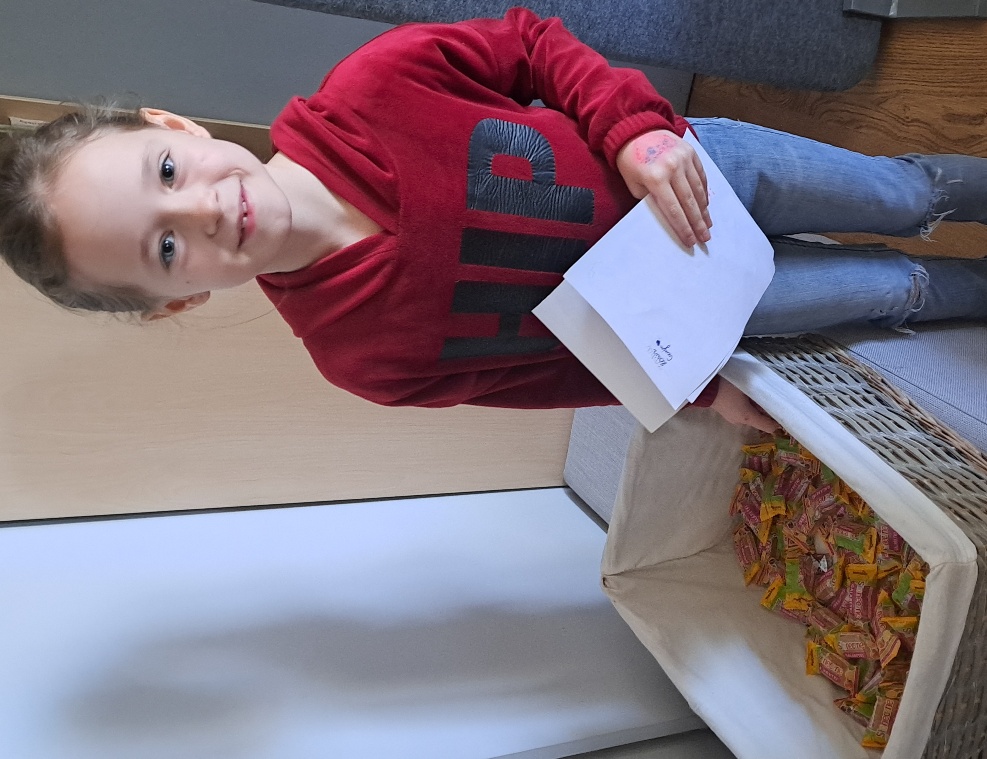 Za trzy poprawnie rozwiązane zadania, sprawdzone przez komisję, uczniowie otrzymywali słodką nagrodę – cukierek!