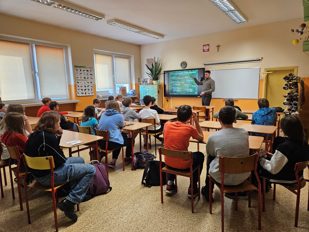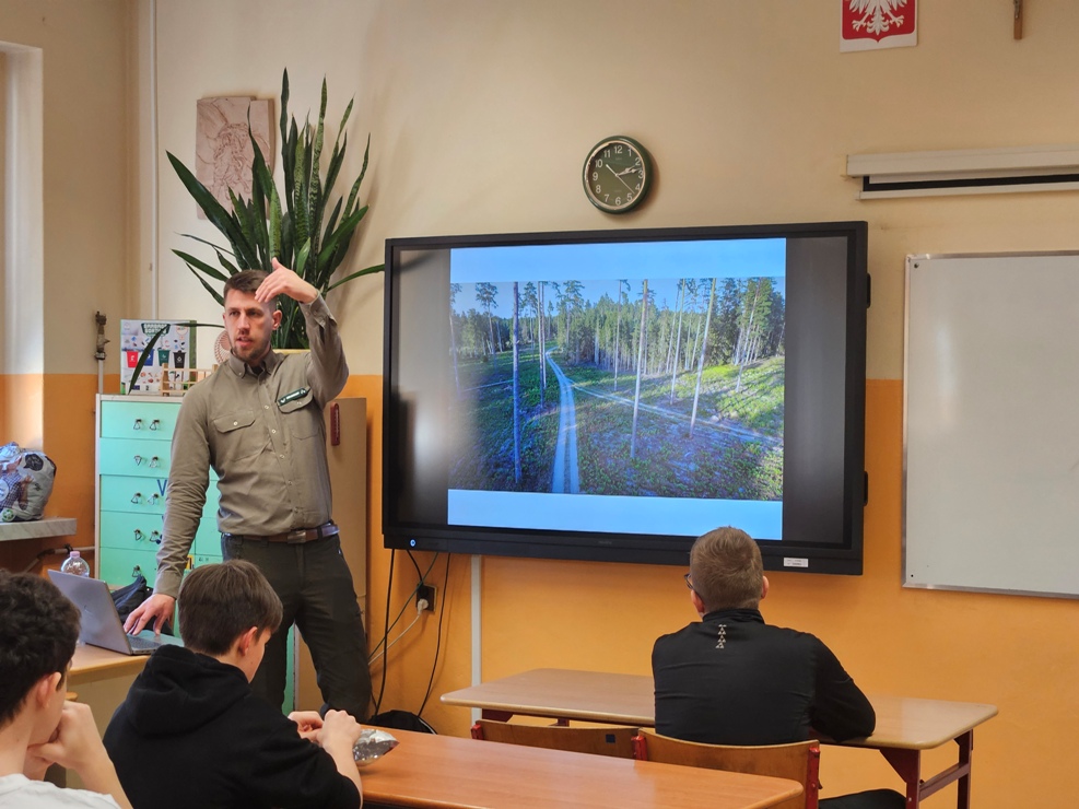 W dniu 30.01.br. w naszej szkole gościliśmy Pana Jacka Boczara- leśnika i rzecznika prasowego Nadleśnictwa Opole, który w ciekawy sposób przybliżył uczniom klasy 5 i 8 problematykę gospodarki leśnej i przyczyn wycinania lasów gospodarczych. Nasz gość zapoznał również uczniów szkoły z możliwościami wykorzystania drewna jako surowca budowlanego i wykończeniowego. Dziękujemy Panu Jackowi Boczarowi za przyjazd i ciekawe, pełne zaangażowania wystąpienie i życzymy spełnienie w niełatwej pracy leśnika i przyrodniczym ksztaltowaniu umysłów młodych ludzi.