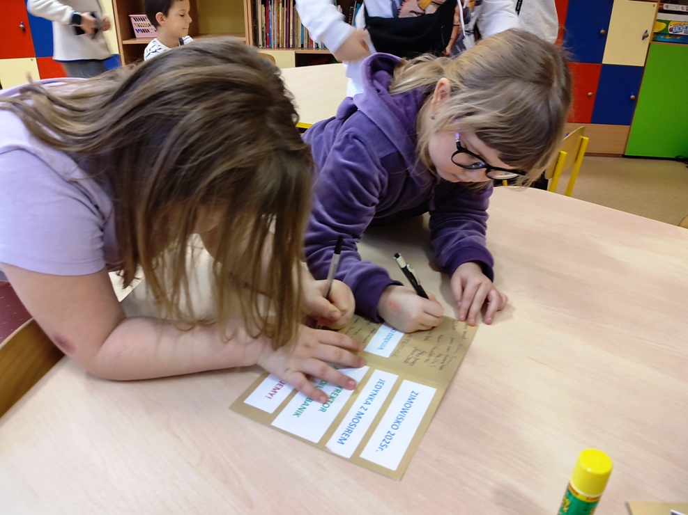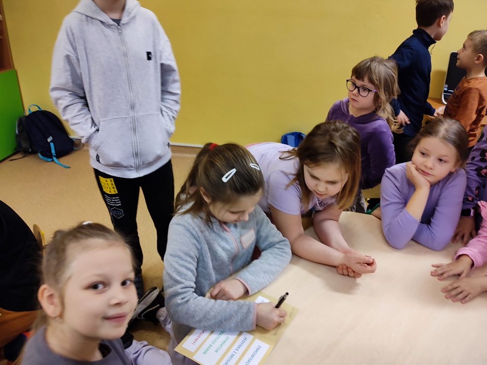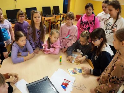 Piątkowy dzień był ostatnim wspólnym dniem na ZIMOWISKU w JEDYNCE z MOSIREM. Przed śnadaniem dokończyliśmy naszą książeczkę- podziękowanie dla Dyrektora MOSiR-u Arkadiusza Banika. Dzieci same wykonały poszczególne strony, które potem zostały zszyte ozdobną wstążeczką. Po śniadaniu wręczyliśmy ją panu dyrektorowi, a potem pojechaliśmy do kina. Film "Zmiennokształtni" był bardzo ciekawy,  a po nim wszyscy omawiali, jakimi zwierzętami chcieliby być, gdyby mieli moc zmieniania się w zwierzęta. Po pysznym obiedzie, i jeszcze pyszniejszym deserze z mango, poszliśmy do lasu, aby rozwiesić wykonane w środę kulki dla ptaków - ze smalcu i różnorodnych ziaren. Teraz leśne ptaki nie zaznają głodu. Po powrocie ze spaceru odbyły się zabawy z piłką w sali gimnastycznej i nawet się nie obejrzeliśmy, kiedy nasze Zimowisko dobiegło końca.  Na koniec dzieci otrzymały podziekowania.