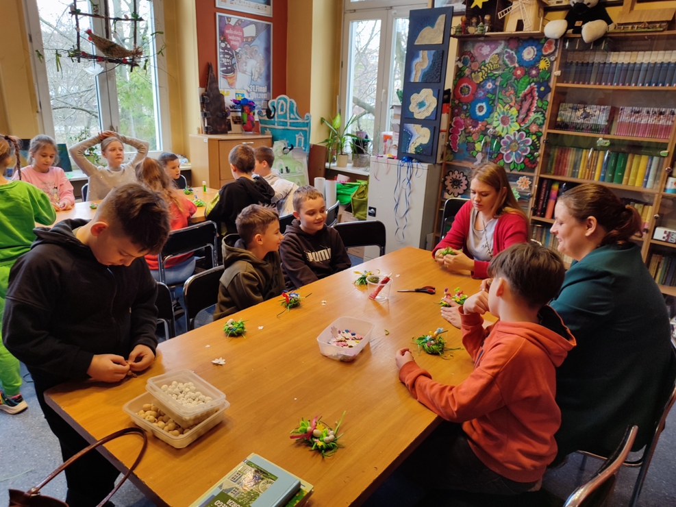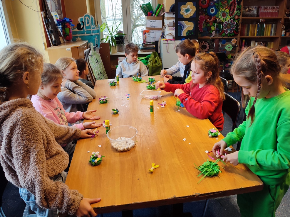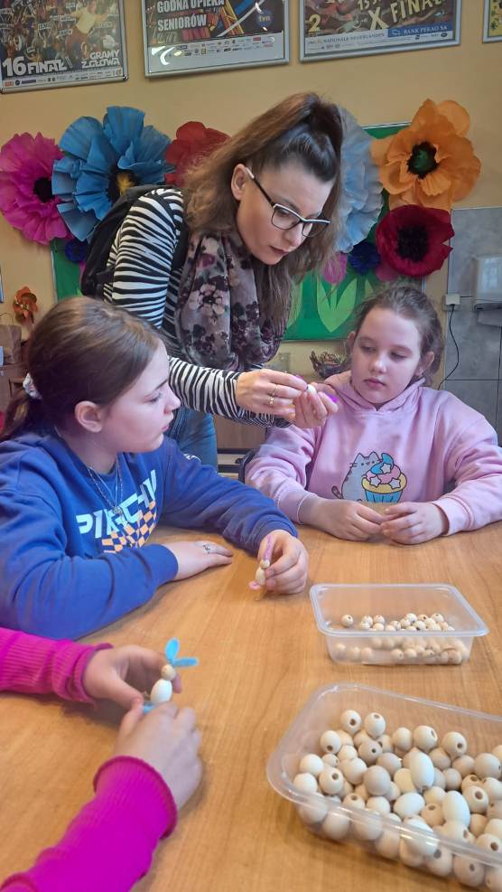 Wzięliśmy udział w warsztatach wielkanocnych, tworząc zajączki z drucików kreatywnych i koralików. Nie zabrakło również muzycznych wrażeń -  uczestniczyliśmy w zajęciach muzycznych, na których poznaliśmy stare, typowo opolskie instrumenty, takie jak piszczałki, gęśle opolskie, gąskę i bębenek. To był dzień pełen wrażeń, odkryć i świetnej zabawy! Dziękujemy za możliwość udziału w projekcie i wspólnie spędzony czas.
