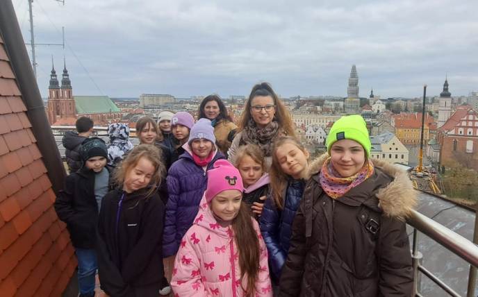 27 marca 2025 r. odbyło się ostatnie spotkanie w ramach projektu "Mały Opolanin 2025". Uczniowie klas 3a i 3b, pod opieką swoich wychowawców pani Anety Woźnicy i pani Soni Koźlik oraz opiekunów pani Karoliny Stręk i pani Grażyny Świercz, zakończyli tę wyjątkową przygodę. Podczas piątkowego spotkania  poznaliśmy historię opolskich książąt, a w szczególności opowieść o Janie Dobrym, który zakochał się w pannie o pięknym i delikatnym imieniu Ofka. Uczniów zaciekawiła historia  św. Wojciecha, który (jak mówi legenda) wygłaszał tak płomienne kazania, że ślady jego stóp odcisnęły się w kamieniu. Piękna była też opowieść o opolskim  Kopciuszku. Dużym wyzwaniem było pokonanie ponad 160 schodów na Wieżę Piastowską, będącą jednym z najważniejszych zabytków Opola, skąd roztacza się niesamowity widok na panoramę miasta i okolic.