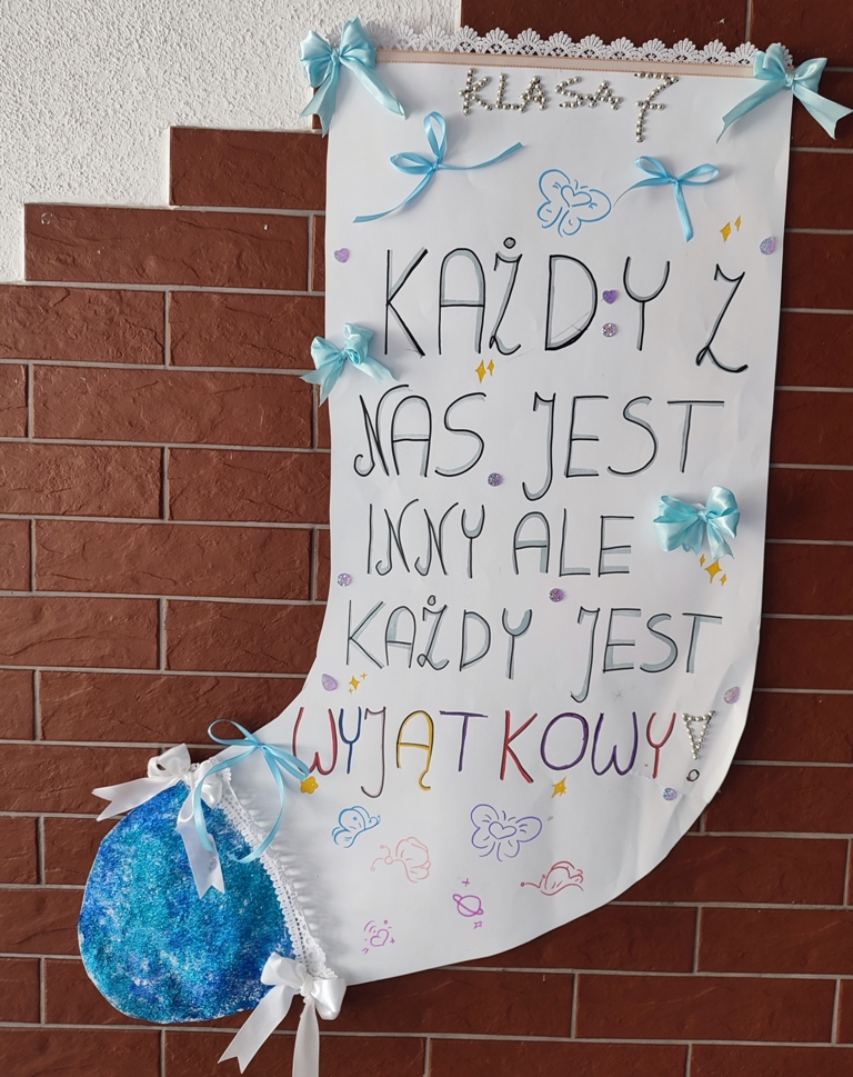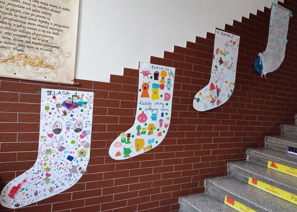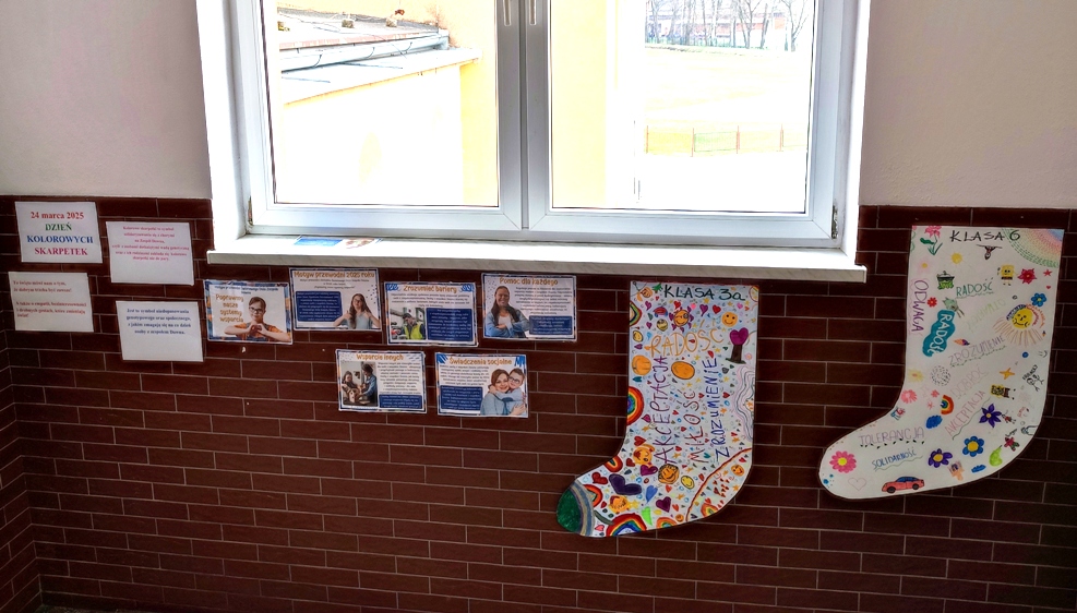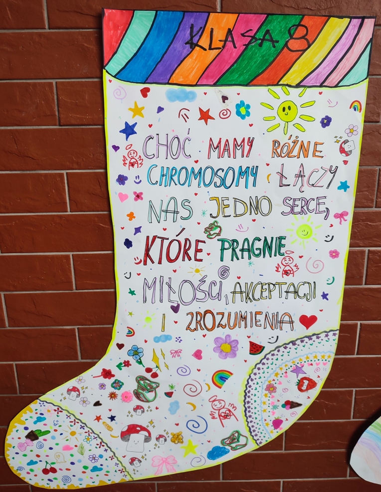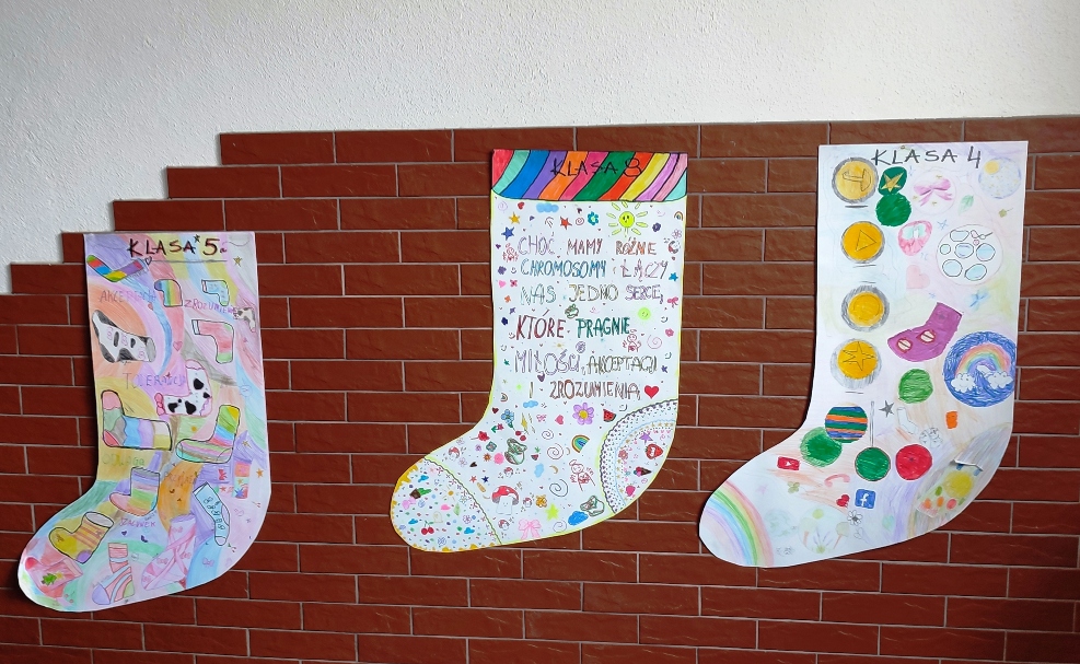 W wielu szkołach i przedszkolach obchodzi się Dzień Kolorowych Skarpetek. W naszej JEDYNCE także! W tym dniu uczniowie ubrali kolorowe skarpetki, ale nie do pary. Są one symbolem solidaryzowania się z osobami z Zespołem Downa oraz ich rodzinami. Chcieliśmy zwrócić uwagę uczniów na potrzeby innych, zwiększyć empatię, życzliwość i bezinteresowność. Chcieliśmy także zachęcić naszą młodzież do podejmowania działań na rzecz innych, aby poszukiwali sposobów pomocy ludziom. Hania Stonoga- wiceprzewodnicząca Samorządu Uczniowskiego - powiedziała, że "to ilu uczniów zaangażowało się w akcję kolorowych skarpetek, pokazuje, że definitywnie było warto!"