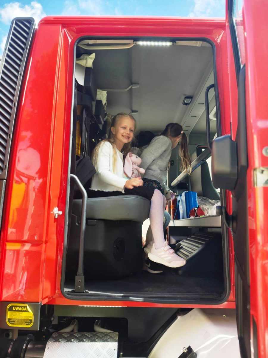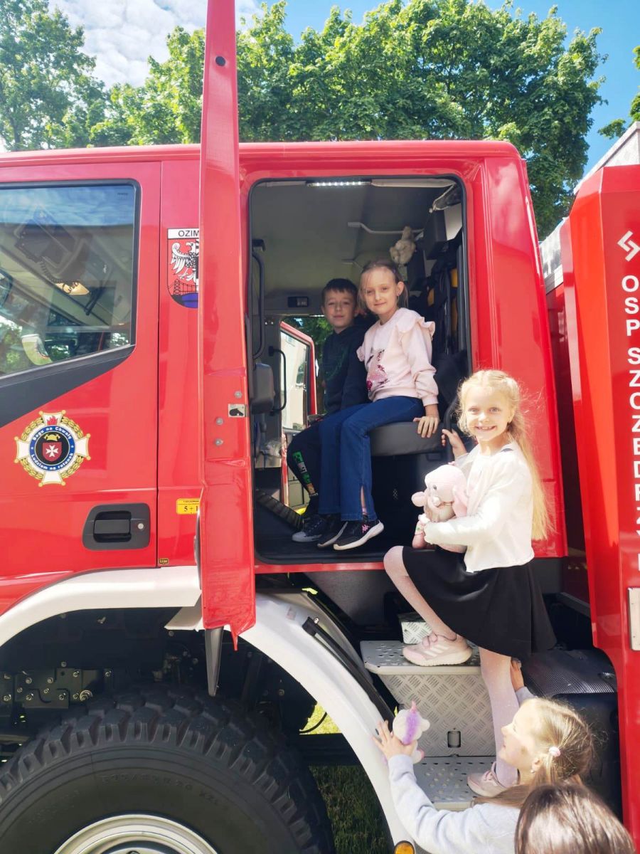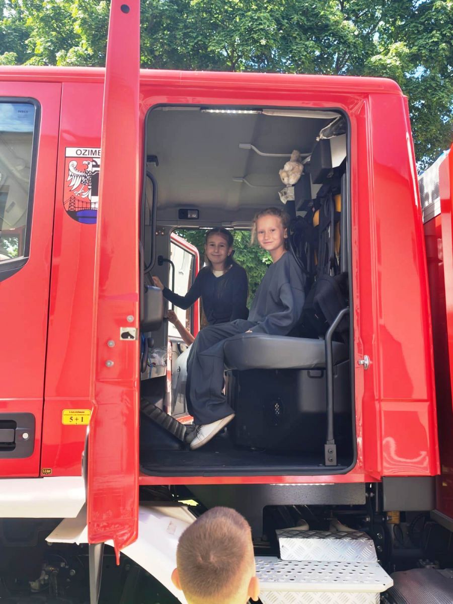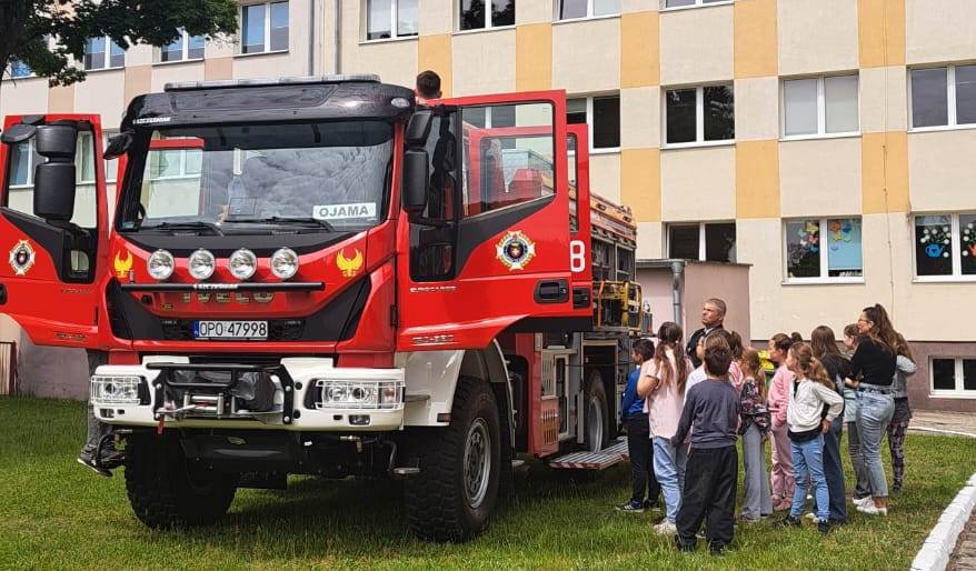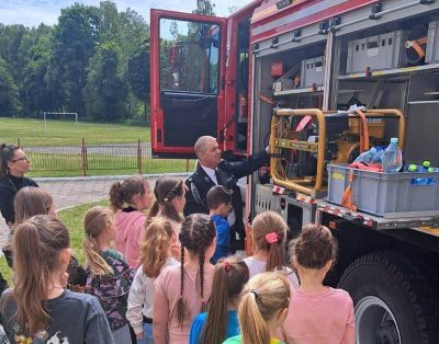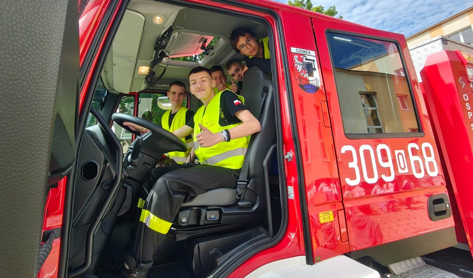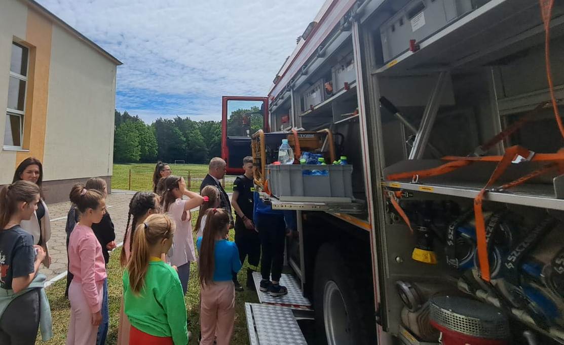 Uczniowie naszej szkoły mogli zobaczyć strażacki wóz bojowy z Ochotniczej Straży Pożarnej w Szczedrzyku. Prezes OSP Szczedrzyk, Druh Andrzej Jakubiec, z ogromną cierpliwością pokazywał wszystkie zakamarki auta i opowiadał, do czego poszczególny sprzęt jest potrzebny. Pomagał mu w tym wnuk Wiktor, który działa w Szkolnej Grupie Zabezpieczenia Medycznego i jest adeptem pożarnictwa. Na  dzieciach i młodzieży wóz zrobił ogromne wrażenie. Nic dziwnego, ten czerwony kolos na kołach jest po prostu wspaniały! Dziękujemy!