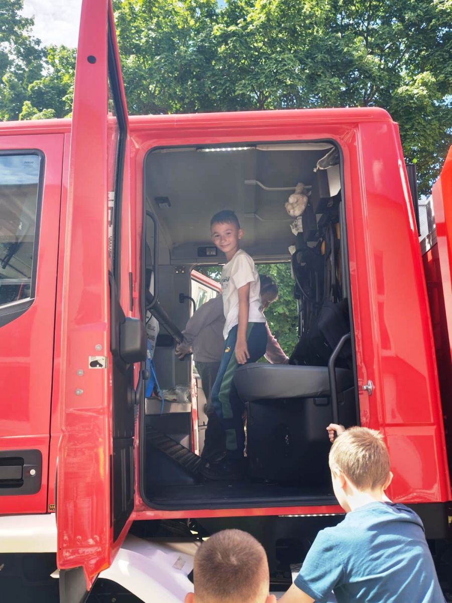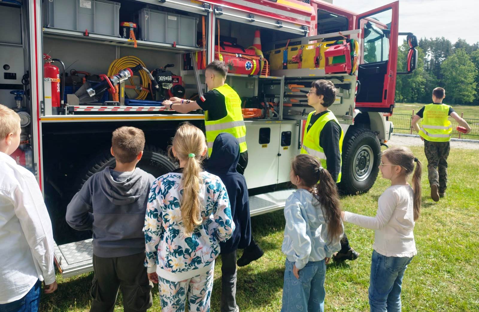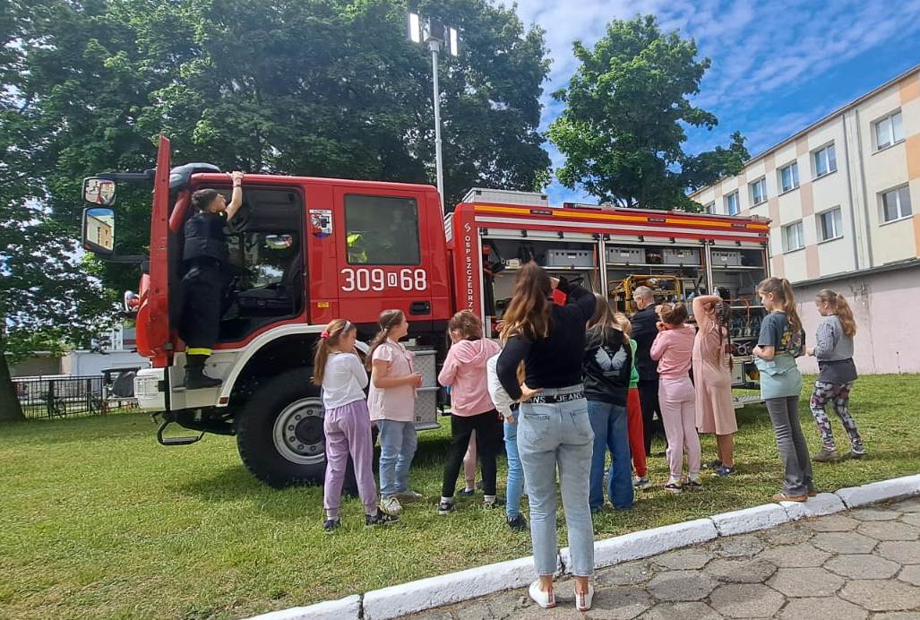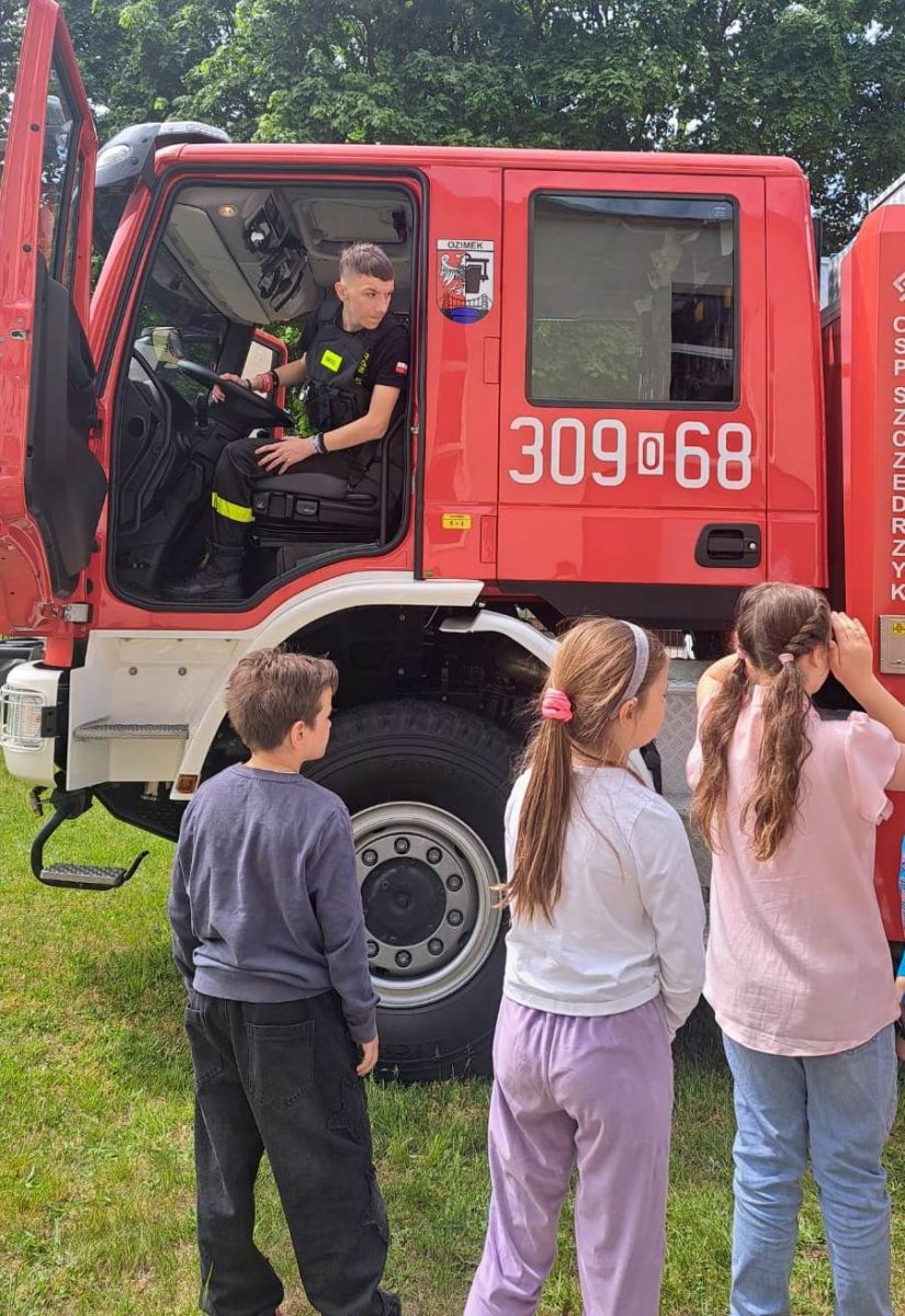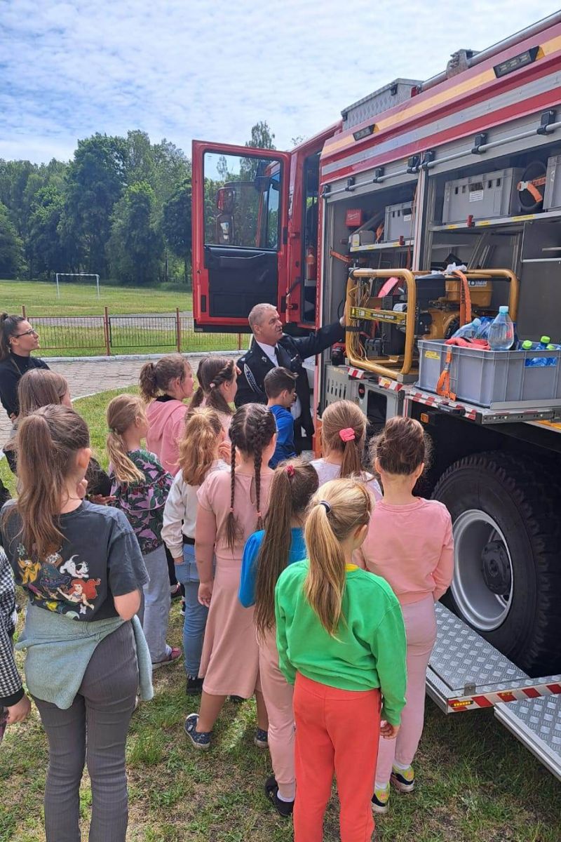 Uczniowie naszej szkoły mogli zobaczyć strażacki wóz bojowy z Ochotniczej Straży Pożarnej w Szczedrzyku. Prezes OSP Szczedrzyk, Druh Andrzej Jakubiec, z ogromną cierpliwością pokazywał wszystkie zakamarki auta i opowiadał, do czego poszczególny sprzęt jest potrzebny. Pomagał mu w tym wnuk Wiktor, który działa w Szkolnej Grupie Zabezpieczenia Medycznego i jest adeptem pożarnictwa. Na  dzieciach i młodzieży wóz zrobił ogromne wrażenie. Nic dziwnego, ten czerwony kolos na kołach jest po prostu wspaniały! Dziękujemy!