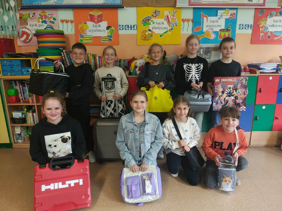 W naszej „Jedynce” nie brakuje pomysłów – udowodnili to uczniowie podczas obchodów Dnia bez plecaka, akcji zorganizowanej przez Samorząd Uczniowski! Zamiast tradycyjnych tornistrów, szkołę opanowały wózki, skrzynki narzędziowe, koszyki na pranie, walizki, a nawet... pudełka i samodzielnie wykonane oświetlone pojemniki.
