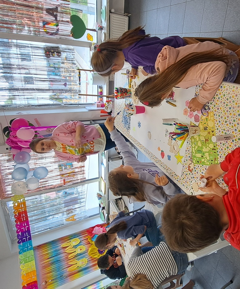 Podczas zajęć dzieci rozwijały swoją wyobraźnię, tworząc oryginalne prace plastyczne związane z tematyką Dnia Dziecka. Powstały barwne i pełne radości portrety klasowe, które ukazały naszą wyjątkową grupę – pełną przyjaźni, uśmiechów i pozytywnej energii. Nie zabrakło również marzeń – uczniowie przedstawiali swoje wymarzone wakacje, rysując plaże, góry, zwierzęta, a nawet dalekie podróże w nieznane.