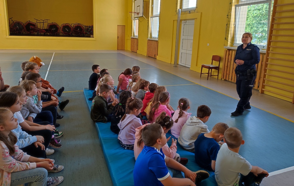 We wtorek, w naszej szkole odbyło się spotkanie z policjantką z Komisariatu Policji w Ozimku, st. sierż. JUSTYNĄ HAMELĄ. Pani policjantka omówiła z uczniami klas 1-3 zasady zachowania podczas wakacji, tak, by spędzić je miło i bezpieczne. Uczniowie żywo reagowali na słowa policjantki, chętnie odpowiadali na pytania i poznawali zasady bezpieczeństwa, ale i zagrożenia. Mamy nadzieję, że dzieci wezmą sobie do serca mądre rady pani policjantki i z wakacji wrócą bezpiecznie!