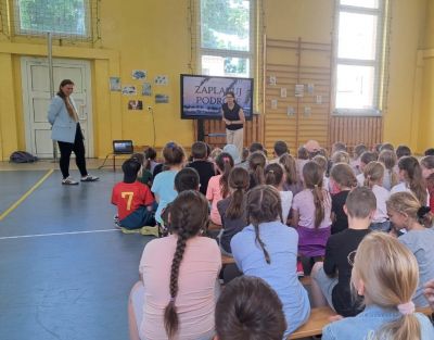 17 czerwca 2025 roku w naszej szkole odbyło się wyjątkowe spotkanie w ramach projektu „Bezpieczne wakacje”. Naszym gościem była pani Magdalena Wojdyła, podróżniczka z piętnastoletnim doświadczeniem, która z ogromną pasją i zaangażowaniem opowiedziała uczniom klas 1–3 o swojej miłości do odkrywania świata. Pani Magda zabrała nas w niezwykłą podróż pełną inspiracji i ciekawostek. W pięknej prezentacji pokazała mnóstwo zdjęć ze swoich wypraw z mężem i córką, która od najmłodszych lat dzieli ich podróżniczą pasję. Podzieliła się z nami praktycznymi wskazówkami, jak szukać biletów, kiedy najlepiej planować wyjazdy i na co zwracać uwagę przy wyborze kierunku podróży. Opowiadała o kulturze i zwyczajach różnych krajów oraz o zaskakujących historiach, które spotkały ich podczas zwiedzania świata. Nie zabrakło też bardzo ważnego tematu, czyli bezpieczeństwa w podróży, które według pani Magdy zawsze powinno być na pierwszym miejscu.