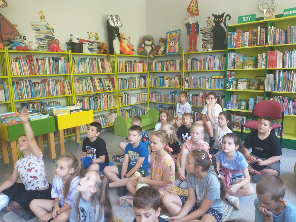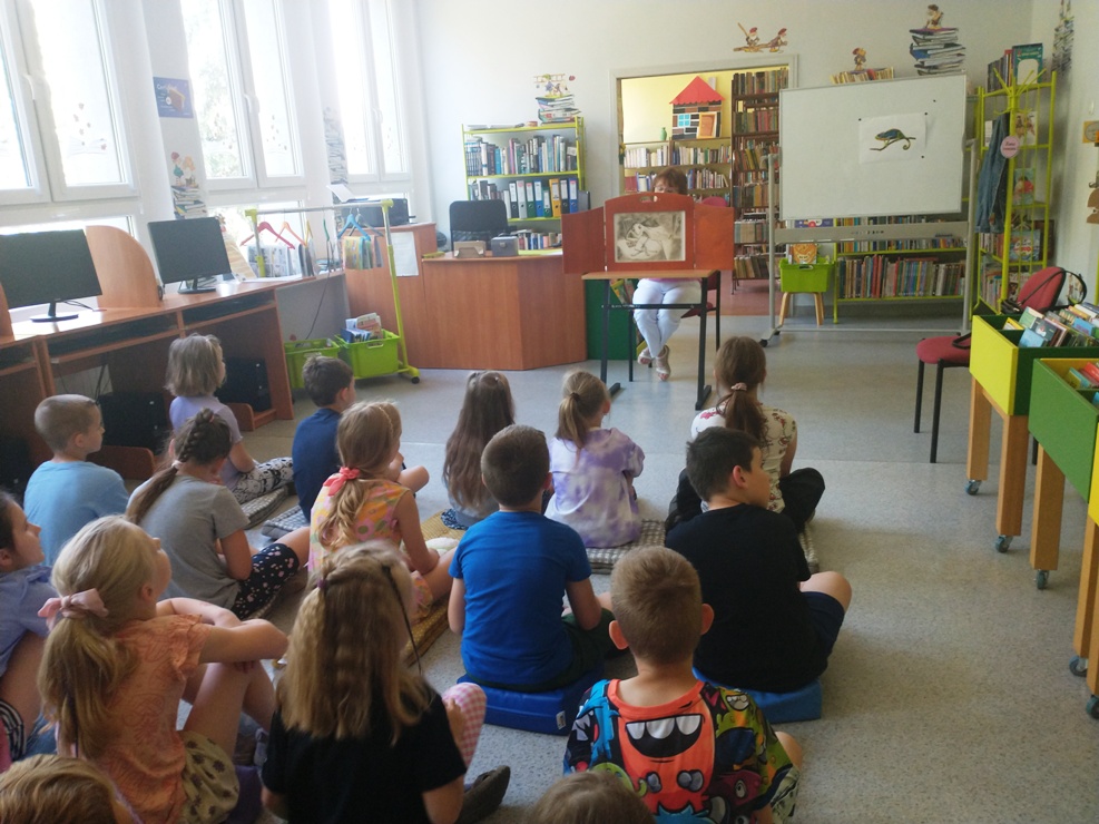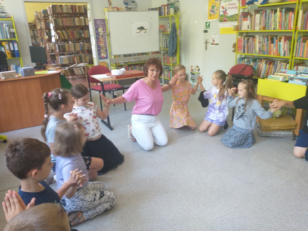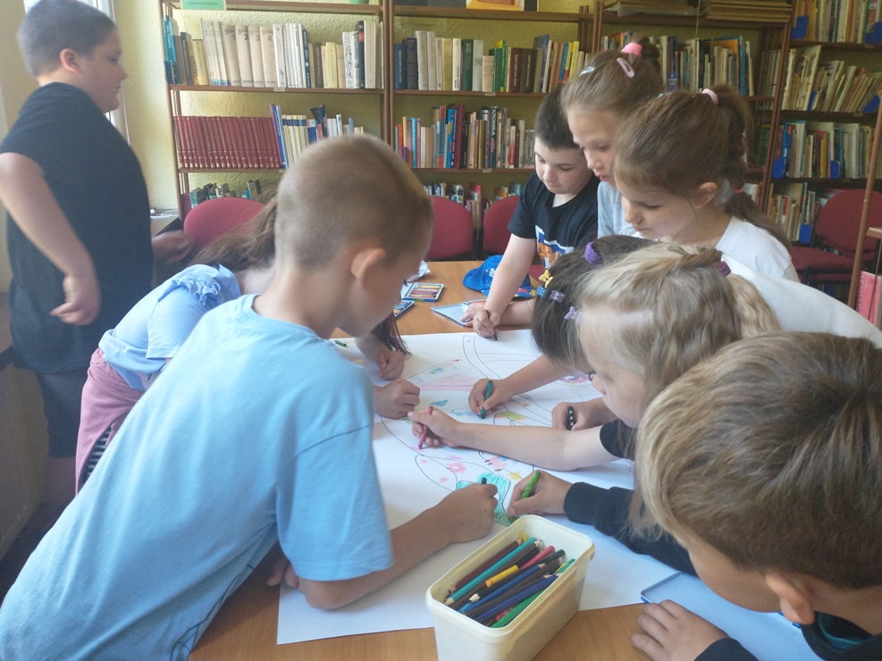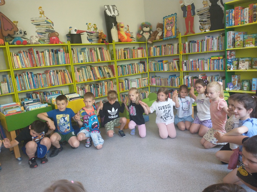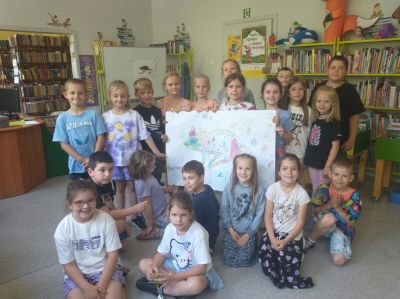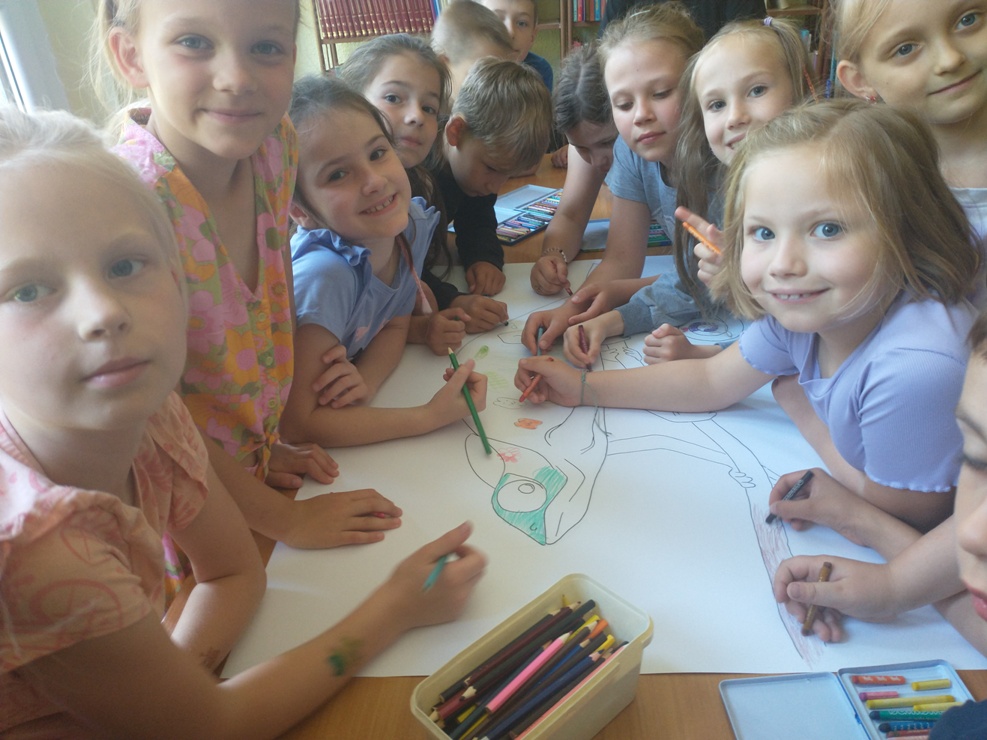 18 czerwca uczniowie klasy 1a uczestniczyli w zajęciach czytelniczych w Oddziale Dziecięcym MiGBP w Ozimku, poprowadzonych przez panią Wiesławę Piechaczek. Na początku dzieci z zainteresowaniem wysłuchały bajki o kameleonie Leonie oraz jego przyjacielu świerszczu Emilu. Bajka stała się przyczynkiem do rozmowy z dziećmi o samoakceptacji i wartości bycia sobą.  Uczestnicząc w grach i zabawach dzieci zobaczyły, że każdy jest wyjątkowy, dostrzegły że  mają  wiele różnych talentów  oraz zrozumiały, że najlepiej w każdej sytuacji jest być sobą. Na zakończenie wykonały pracę plastyczną, która polegała na  pokolorowaniu dużego kameleona, wykazując się przy tym pomysłowością oraz tolerancją i zgodą przy wspólnej pracy.