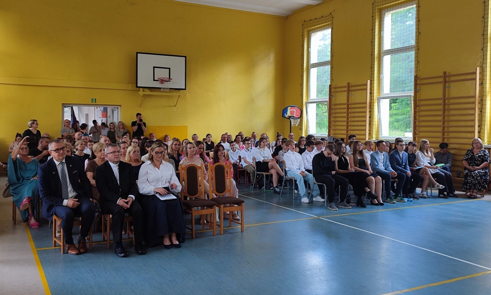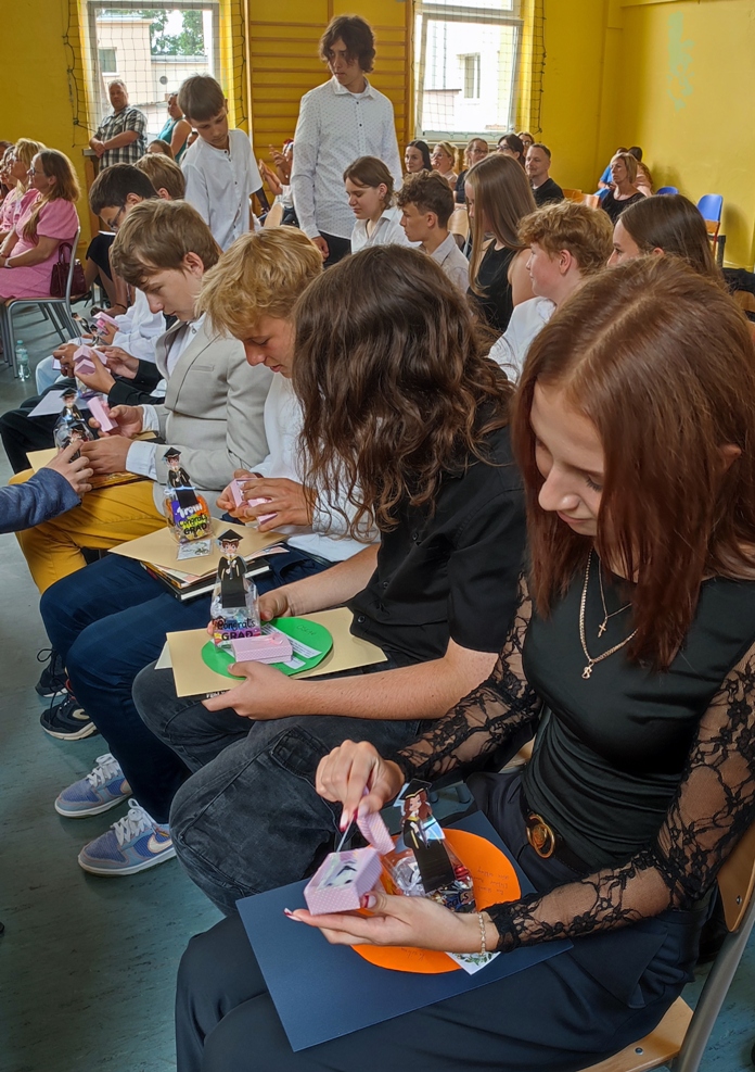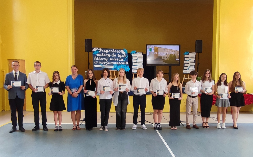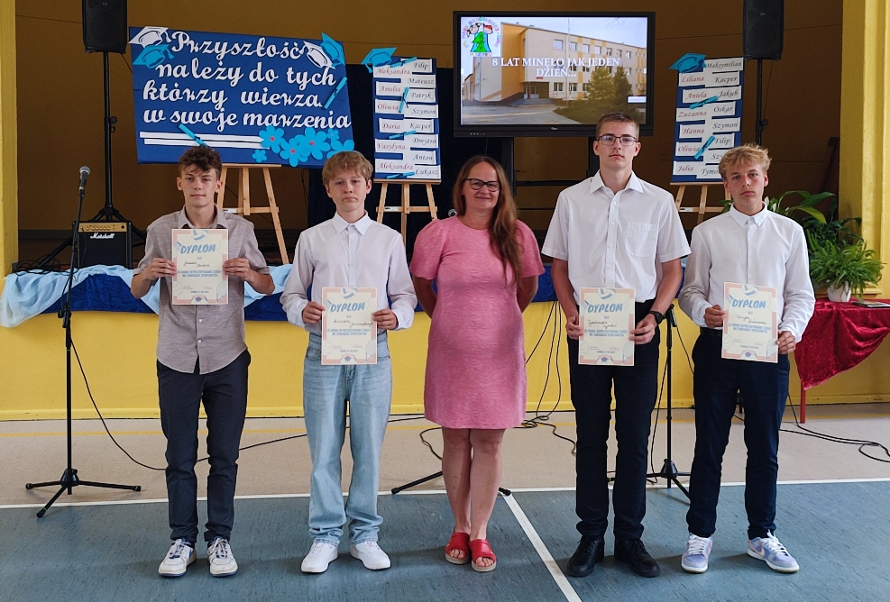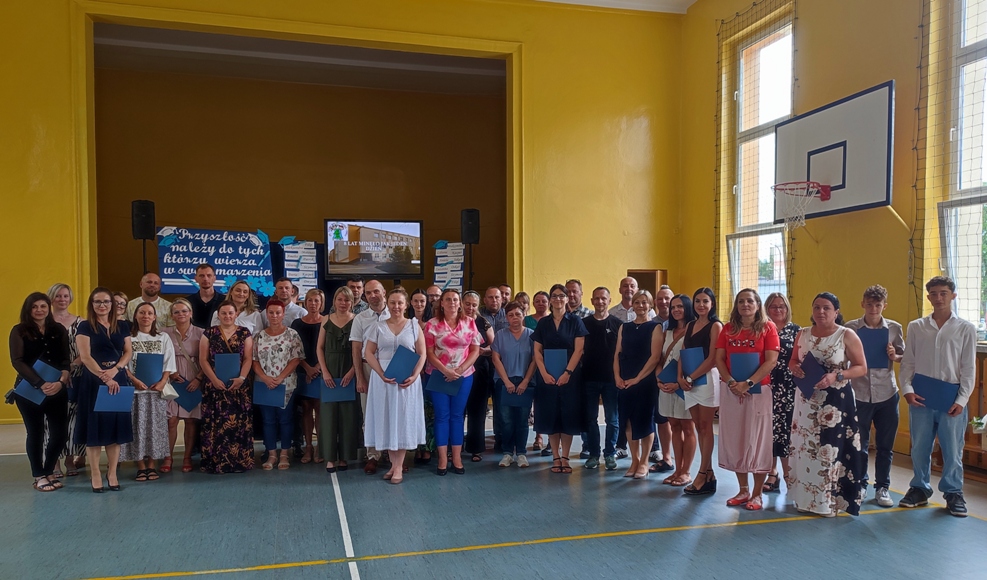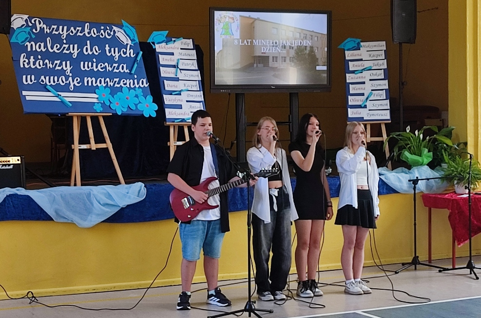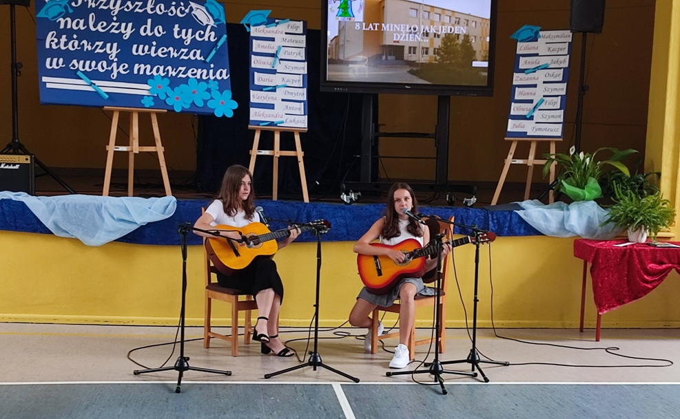 Nasi wspaniali ÓSMOKLASIŚCI pożegnali się ze szkołą. Tanecznym krokiem Poloneza weszli w nowy etap swojego życia. Towarzyszyli im rodzice i dziadkowie, nauczyciele i pracownicy szkoły. Uroczystość zaszczycili swoją obecnością Burmistrz Ozimka Mirosław Wieszołek i Ksiądz Proboszcz Marian Demarczyk. Po pięknych przemówieniach przyszli absolwenci złożyli ślubowanie na sztandar szkoły, a potem nastąpiło przekazanie sztandaru uczniom klasy siódmej. Ósmoklasiści otrzymali, oprócz świadectw, nagrody książkowe za bardzo dobre wyniki w nauce, dyplomy za osiągnięcia sportowe i za ofiarność oraz poświęcenie w szkolnym Wolontariacie. Burmistrz Mirosław Wieszołek wręczył im także stypendia naukowe. Dyrektor Małgorzata Wronowska przekazała dwie statuetki PRYMUSA PSP NR 1 W OZIMKU uczennicom: Liliannie Błażejewskiej i Aleksandrze Wiernej. Rodzice uczniów otrzymali Listy Gratulacyjne i Podziękowania, a w ich imieniu wystąpiła Pani Barbara Krawczuk, która ze wzruszeniem podziękowała za te osiem wspaniałych, wspólnych lat. Uczniowie klasy 7a podarowali śliczne upominki swoim starszym koleżankom i kolegom. Dla nich też wystąpiły uczennice z klasy 6a w żywiołowym tańcu oraz uczniowie klasy 7a w nostalgicznej piosence. Na zakończenie uczniowie klasy ósmej zagrali na gitarach i zaśpiewali piosenki, by pożegnać się ze szkołą ...śpiewająco i wzruszająco. Ósmoklasiści wręczyli kwiaty i podziękowania na ręce Pani dyrektor, kwiaty i podziękowania nauczycielom i pracownikom administracji i obsługi szkoły, ale przede wszystkim pożegnali się ze swoją długoletnią wychowawczynią, Panią Grażyną Łygą. Pani Łyga życząc swoim wychowankom powodzenia i sukcesów, powiedziała, że "na świadectwie nie ma ocen za wytrwałość i odwagę, za empatię i przyjaźń, za kreatywność i poczucie humoru, za trudne decyzje i pokorę, bo świadectwo to papier, a człowiek to opowieść!"