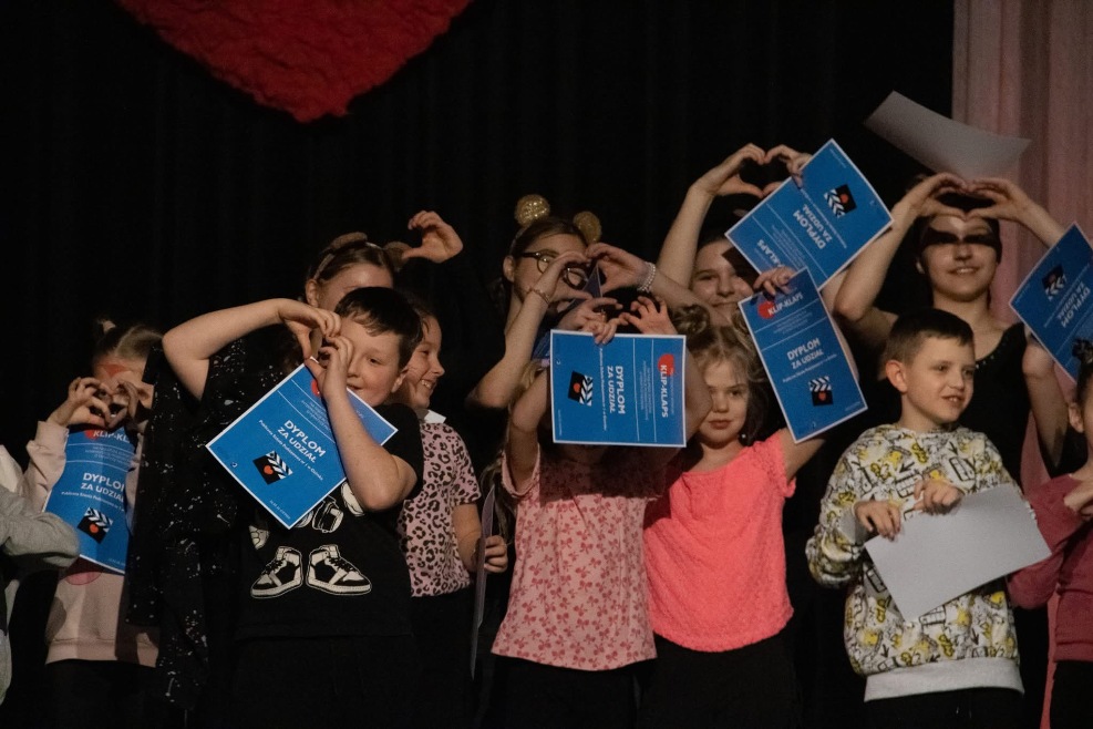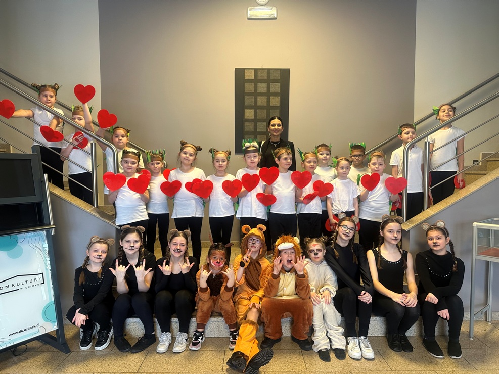 Uczniowie klasy II a wraz z uczennicami z klasy VI a , pod kierunkiem Pani Darii Bejm zdobywają 1 miejsce i tym samym wygrywają międzyszkolny konkurs Klip-Klaps 2025 na najlepszą sceniczną interpretacje piosenki filmowej o tematyce miłosnej. Nasi artyści zaprezentowali się do utworu pt. „ Miłość Rośnie wokół nas” . Dziękujemy za wspaniałe wsparcie, dobre słowa i ogromną życzliwość rodzicom.
