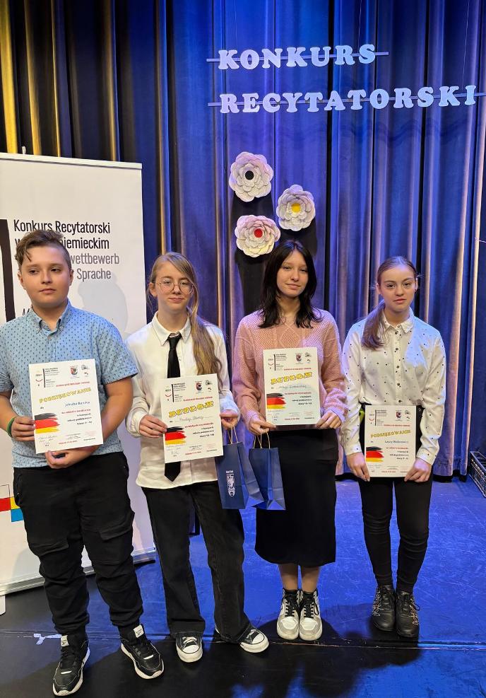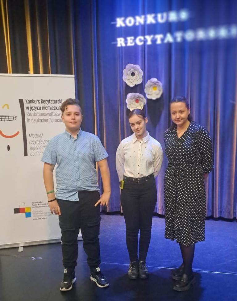 Z radością informujemy, że nasi uczniowie wzięli udział w konkursie recytatorskim w języku niemieckim „Jugend trägt Gedichte vor”, organizowanym przez Towarzystwo Społeczno-Kulturalne Niemców na Śląsku Opolskim (TSKN). Naszą szkołę reprezentowali: