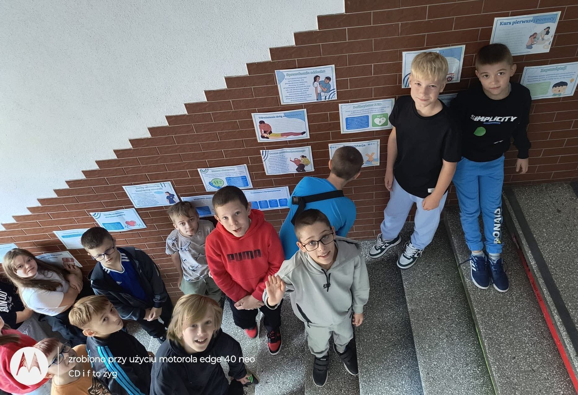 Dla starszych klas przygotowano gazetkę tematyczną, dzięki której również mogli utrwalić wiedzę o pierwszej pomocy.