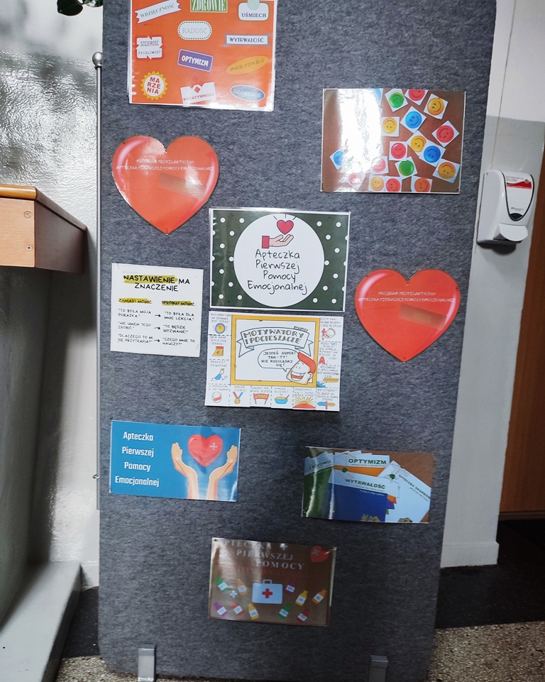 W naszej szkole pojawiła się niezwykła „Apteczka pierwszej pomocy emocjonalnej ”. Na gazetkach rozwiesiliśmy karteczki–motywatory, które uczniowie mogli zabrać dla siebie albo podarować komuś, kto potrzebował dobrego słowa.