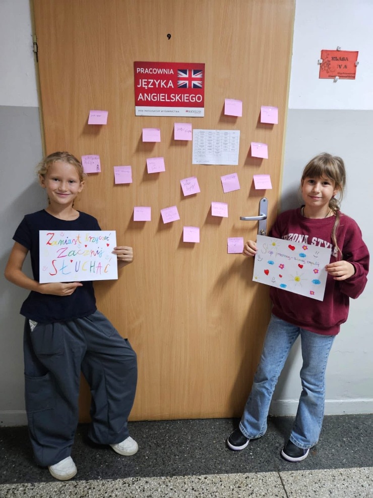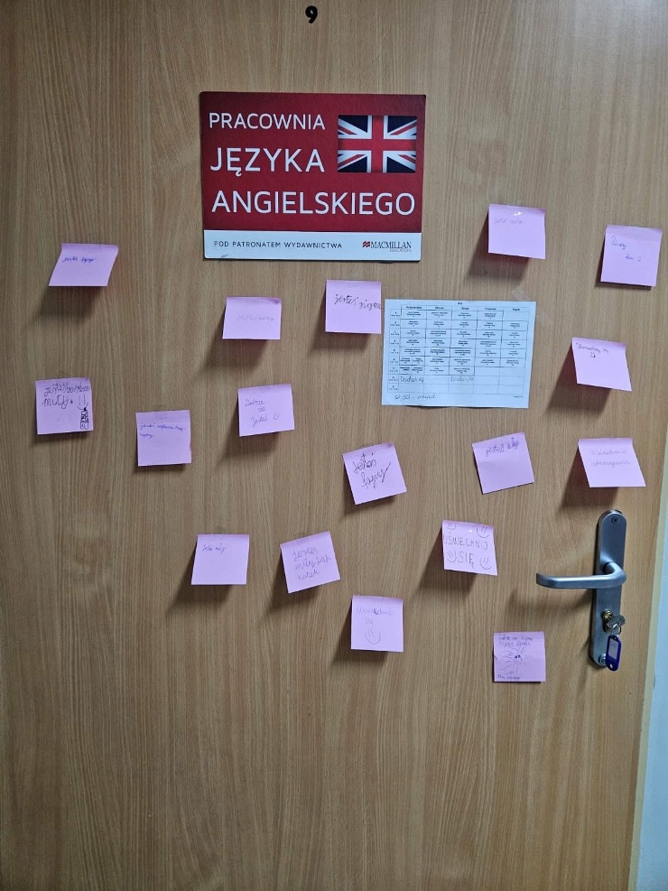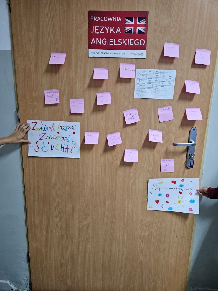 pokazywały, że dobre słowo ma ogromną moc i potrafi dodać sił w trudnym dniu. Uczniowie przygotowali prace plastyczne, rozmawiali o emocjach i tworzyli plakaty. Każda klasa umieściła też własne karteczki wsparcia na wspólną tablicę – tak, aby każdy mógł sięgnąć po odrobinę otuchy, gdy tego potrzebuje.