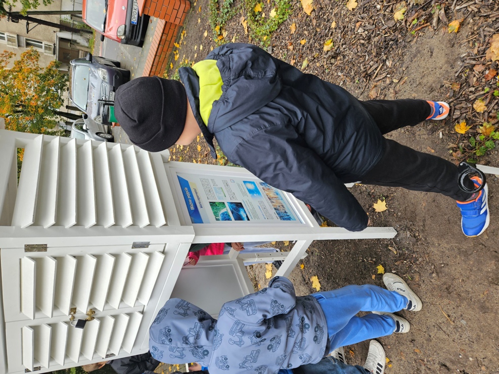 W dniu 10 października br. dzieci z klasy 4a uczestniczyły z zajęciach terenowych z przyrody wykorzystując nasz nowy szkolny nabytek - klatkę meteorologiczną. Wraz z nauczycielem przyrody-Panem Markiem Kaziakiem poznali tajniki obserwacji pogodowych z wykorzystaniem wyposażenia obiektu. Pytań nie było końca, co świadczy, że obserwacje pogody w praktyce okazały się strzałem w dziesiątkę! Może spośród naszych dzieci wyrośnie przyszły meteorolog...