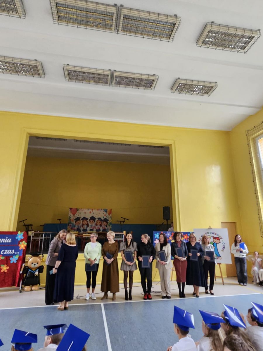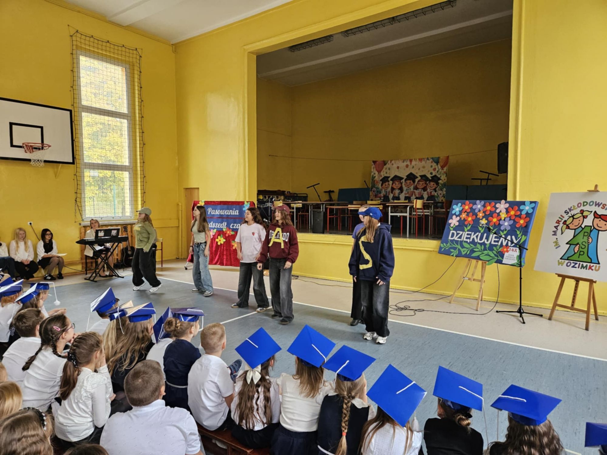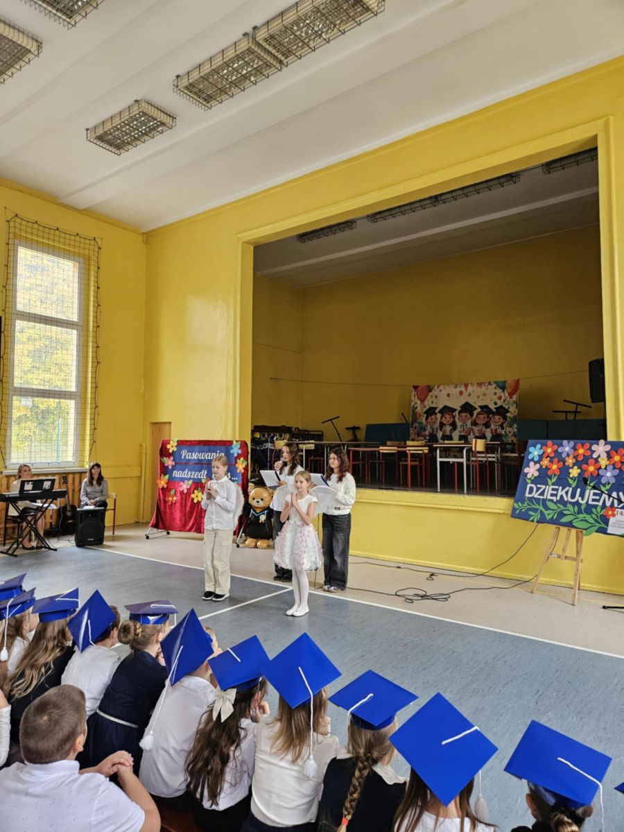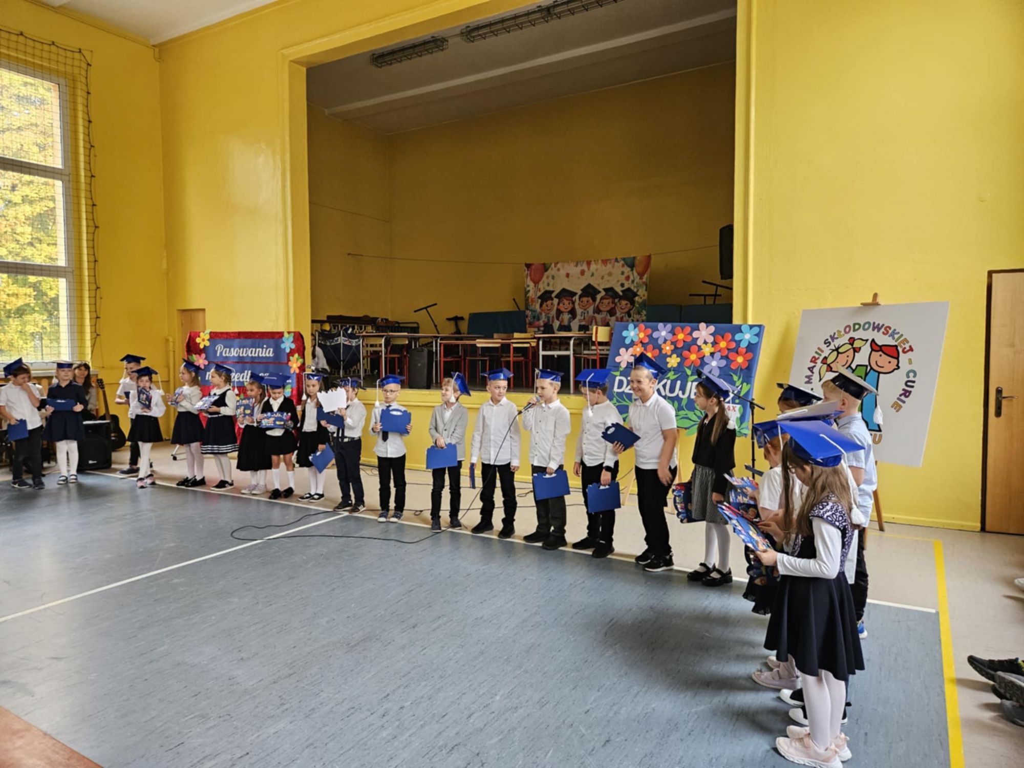 W dniu 13 października w naszej szkole odbył się uroczysty apel z okazji Dnia Edukacji Narodowej. Uczniowie klas IVA i VIIA przygotowali piękny występ  w podziękowaniu nauczycielom i pracownikom obsługi szkoły za ich pracę. Uczniowie zaprezentowali nie tylko swoje umiejętności recytatorskie,  taneczne i wokalne, ale również i aktorskie talenty przedstawiając różne typy nauczycieli oraz dzień z życia klasy IV w nowej odsłonie :) W tym uroczystym dniu nie obyło bez wyróżnień. Najpierw Pani Dyrektor Małgorzata Wronowska wręczyła nauczycielom oraz pracownikom szkoły nagrody dyrektora szkoły. A potem razem z Zastępcą Burmistrza Marcinem Widerą Pani Dyrektor rozdała stypendia uczniom za osiągnięcia w nauce w zeszłym roku szkolnym. Wisienką na torcie było pasowanie klasy pierwszej, która również przygotowała wzruszający występ.