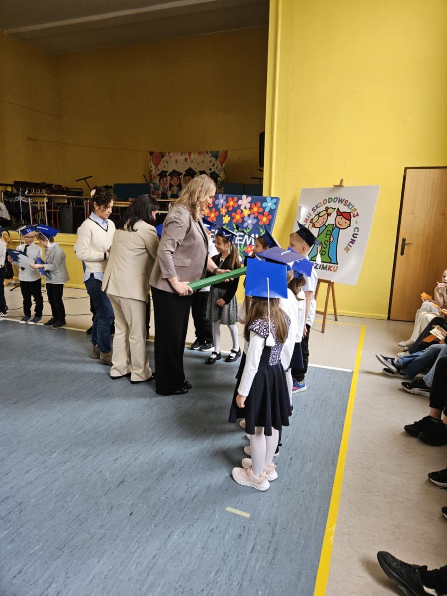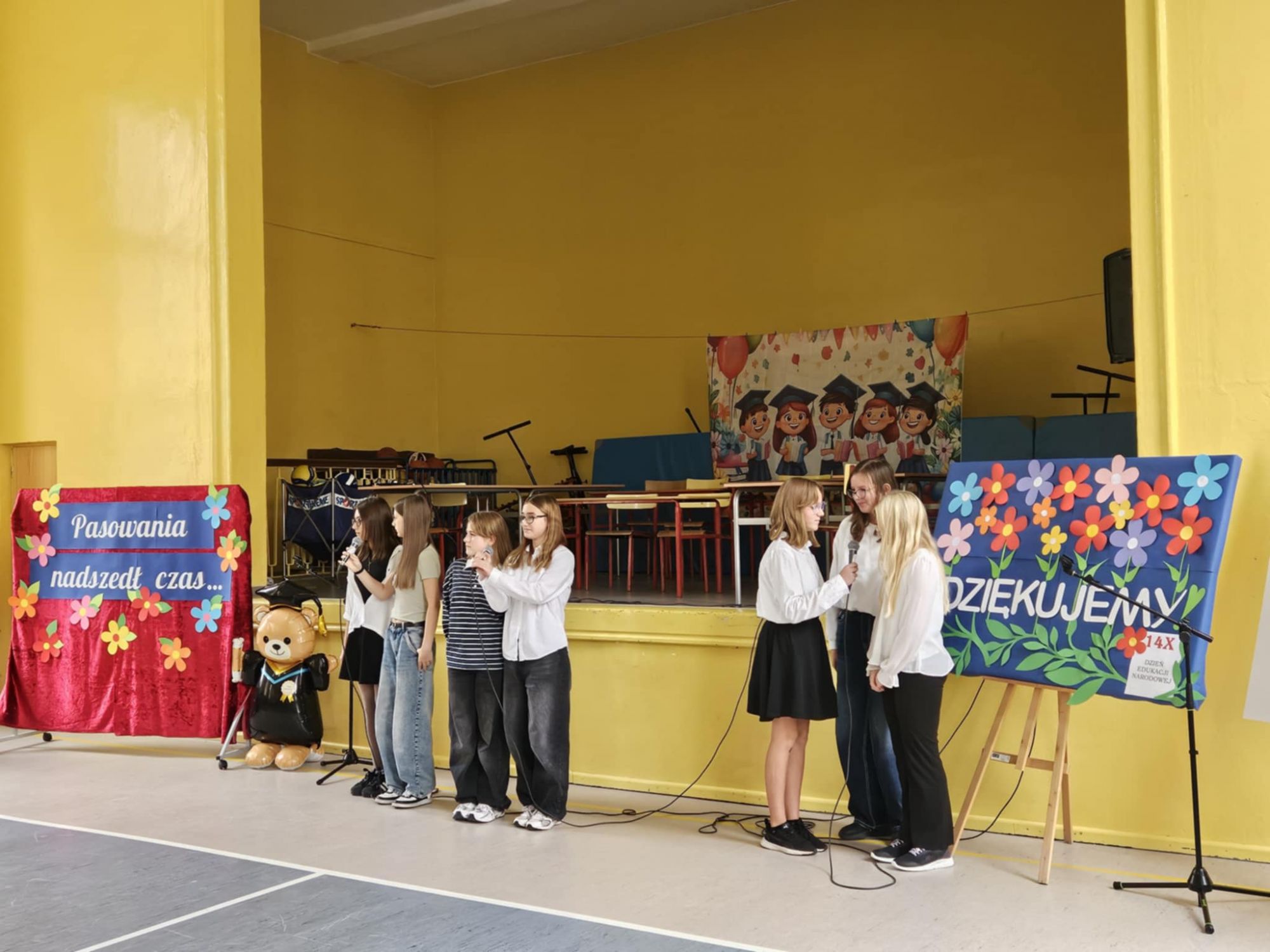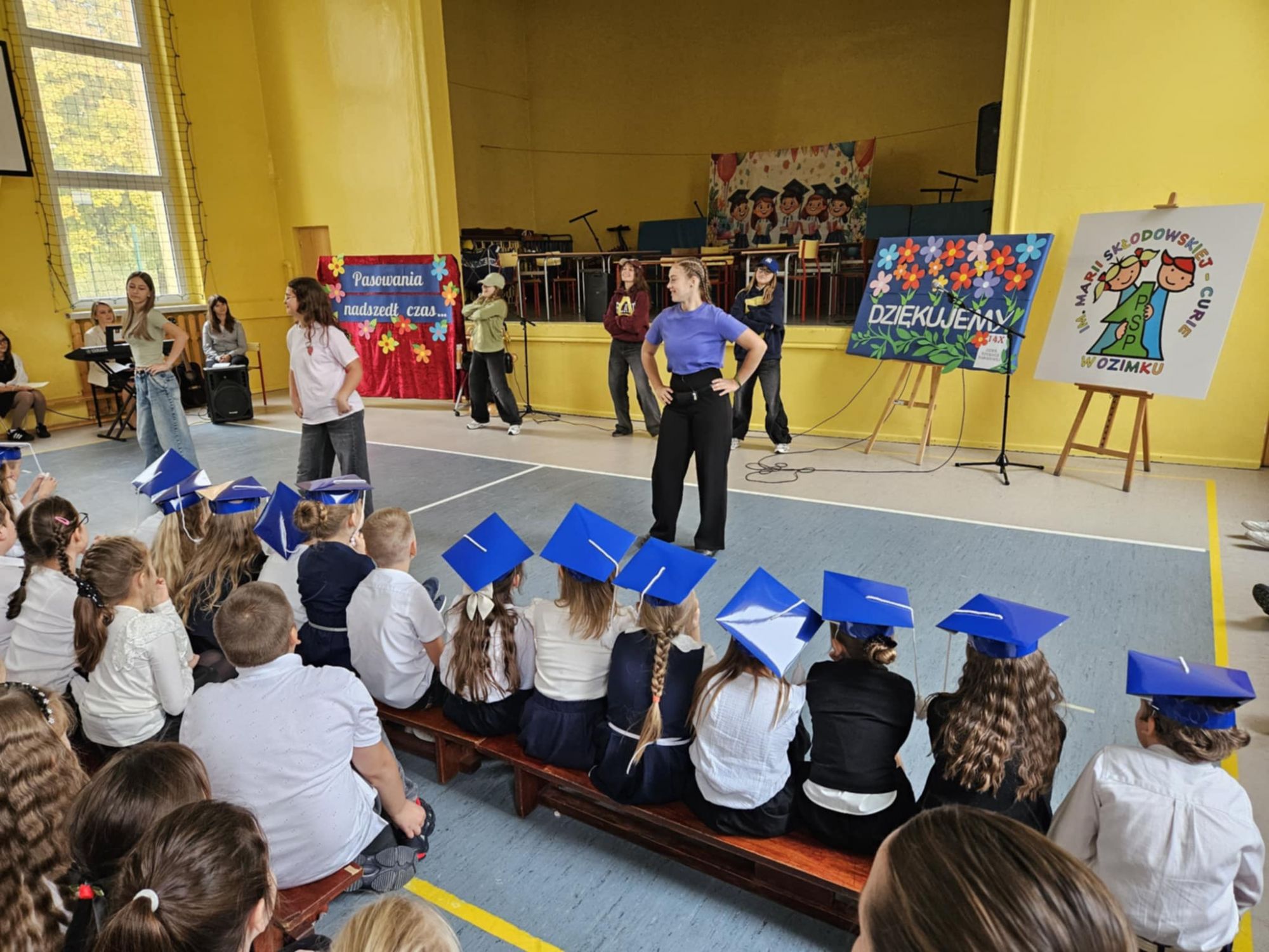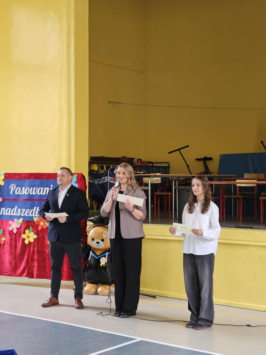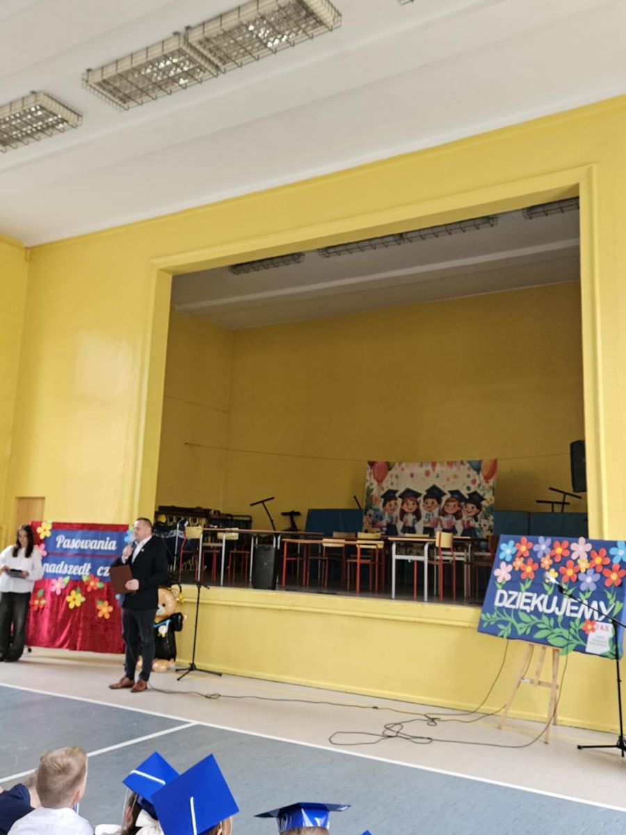 W dniu 13 października w naszej szkole odbył się uroczysty apel z okazji Dnia Edukacji Narodowej. Uczniowie klas IVA i VIIA przygotowali piękny występ  w podziękowaniu nauczycielom i pracownikom obsługi szkoły za ich pracę. Uczniowie zaprezentowali nie tylko swoje umiejętności recytatorskie,  taneczne i wokalne, ale również i aktorskie talenty przedstawiając różne typy nauczycieli oraz dzień z życia klasy IV w nowej odsłonie :) W tym uroczystym dniu nie obyło bez wyróżnień. Najpierw Pani Dyrektor Małgorzata Wronowska wręczyła nauczycielom oraz pracownikom szkoły nagrody dyrektora szkoły. A potem razem z Zastępcą Burmistrza Marcinem Widerą Pani Dyrektor rozdała stypendia uczniom za osiągnięcia w nauce w zeszłym roku szkolnym. Wisienką na torcie było pasowanie klasy pierwszej, która również przygotowała wzruszający występ.