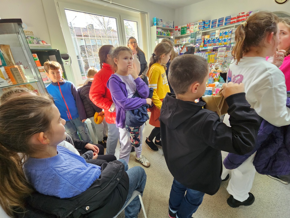 W dniu 29 października klasa 4b odwiedziała aptekę w ramach zajęć z profilaktyki zdrowia i leczenia chorób. Dzięki uprzejmości gospodarzy uczniowie poznali czym różni się kapsułka od tabletki oraz czy miód jest dobrym środkiem na przeziębienie. Dzieci mogły zobaczyć jakie cudowne działanie ma moździerz oraz ile pudełek z tabletkami znajduje się na zapleczu. Na koniec ..., a jakże...drobne upominki dla małych gości od firmy za które serdecznie dziękujemy!