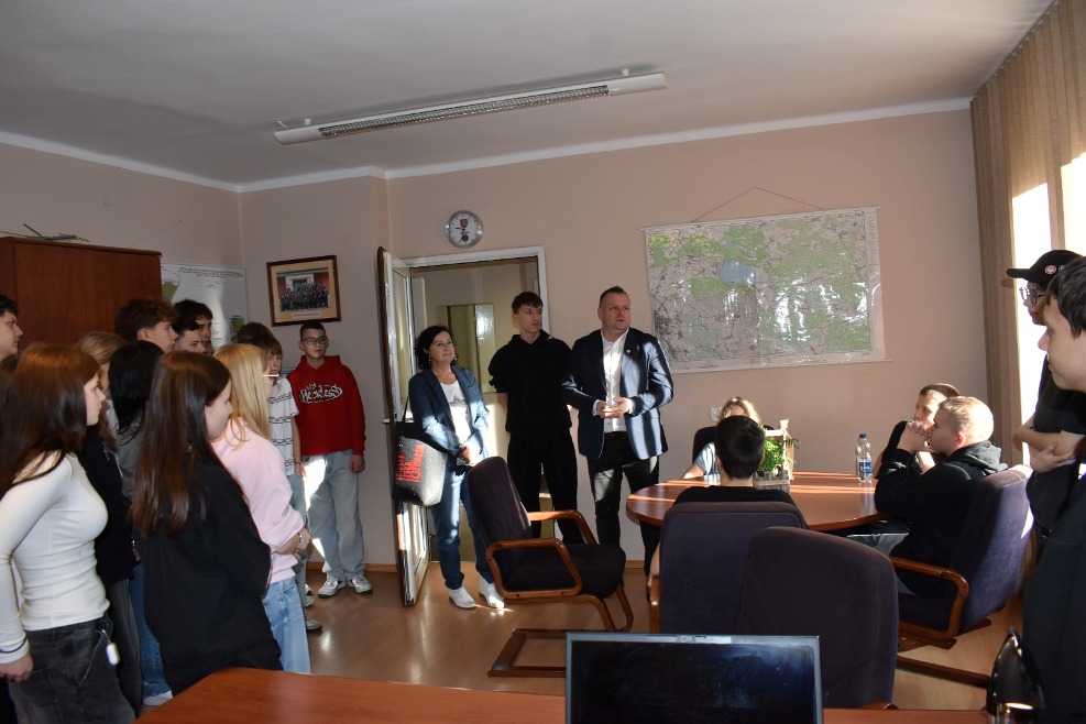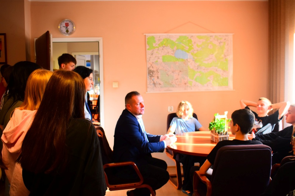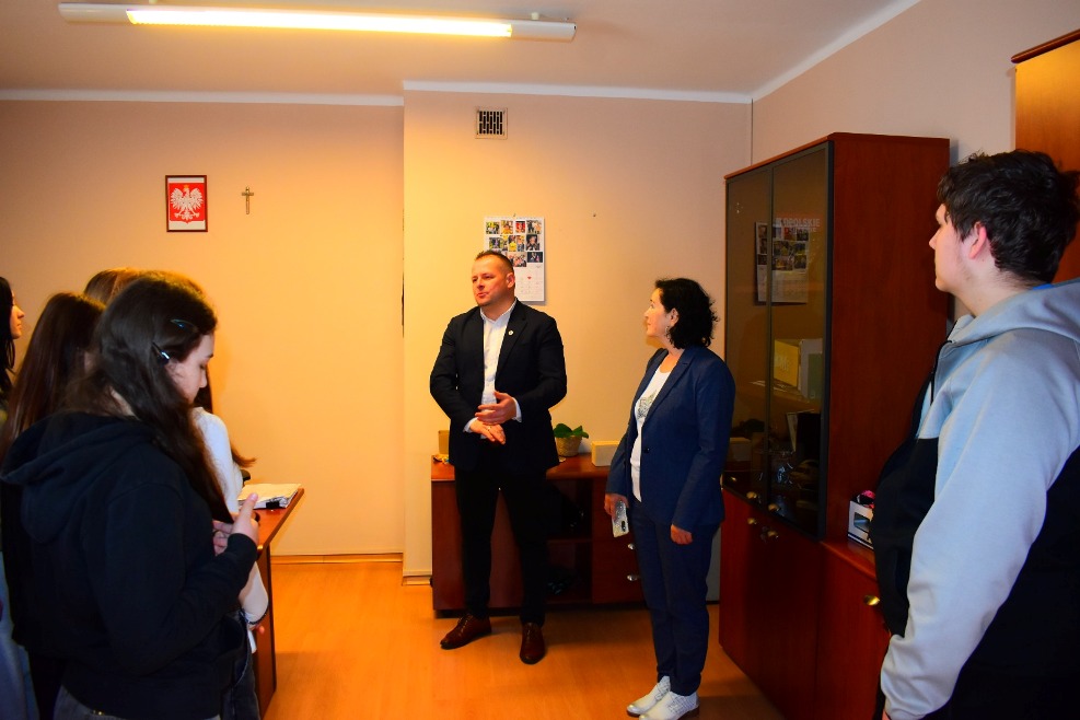 Zastępca burmistrza Marcin Widera opowiedział o swojej pracy, o zadaniach, które aktualnie są realizowane w gminie. Zaprosił też młodzież do "okrągłego stołu", gdzie uczniowie mogli poczuć się jak inwestorzy, którzy rozmawiają o z burmistrzem o inwestycjach. Można było usiąść w fotelu burmistrza i sprawdzić, czy będzie to, miejsce, do którego chcemy dążyć w dorosłym życiu. Pożegnaliśmy wiceburmistrza Widerę oraz niezastąpioną Panią Monikę Langosz, która pełni swoją funkcję od kilku dekad, stając się niemalże symbolem znakomitego i niezastąpionego urzędnika.