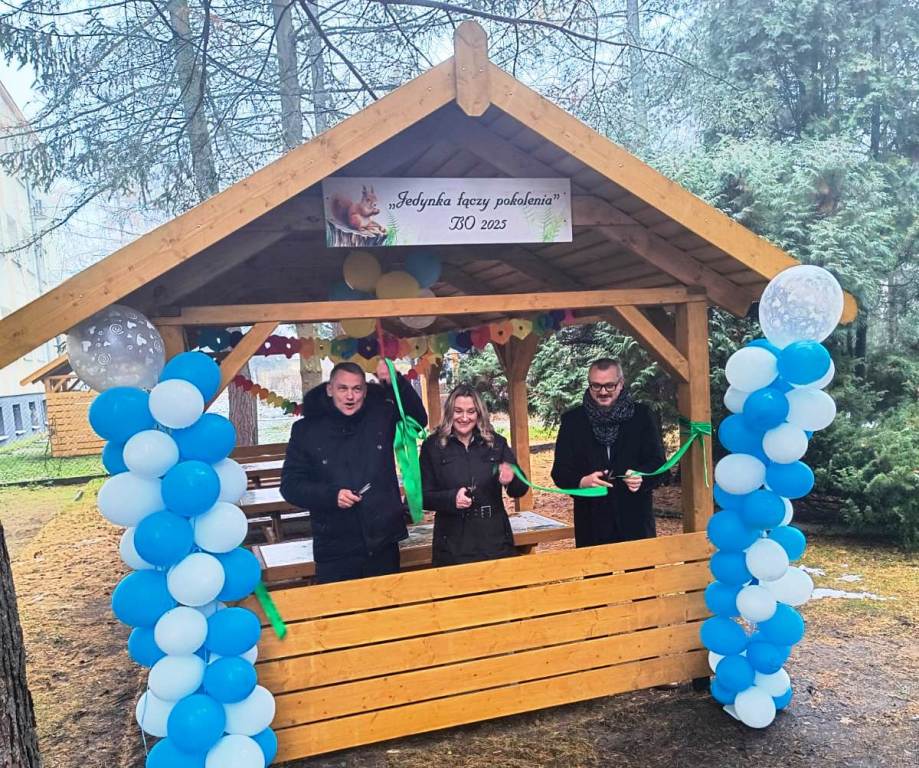 Apel zakończyło wręczenie medali "superbohaterki” i "superbohatera" dla gości oraz zaproszenie na drugą część wydarzenia, podczas której oficjalnie otwarto szkolną wiatę edukacyjną - "Jedynka łączy pokolenia", pozyskaną w ramach Budżetu Obywatelskiego Gminy – miejsce, które od teraz będzie sprzyjać integracji, nauce i działaniom na świeżym powietrzu.