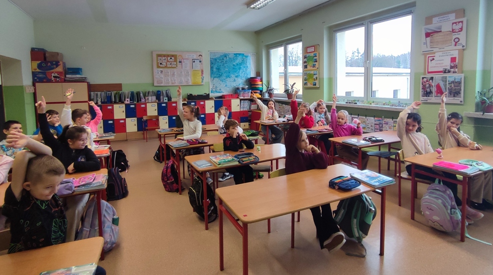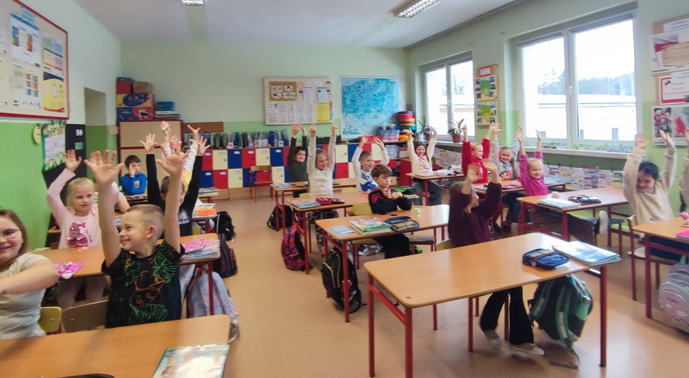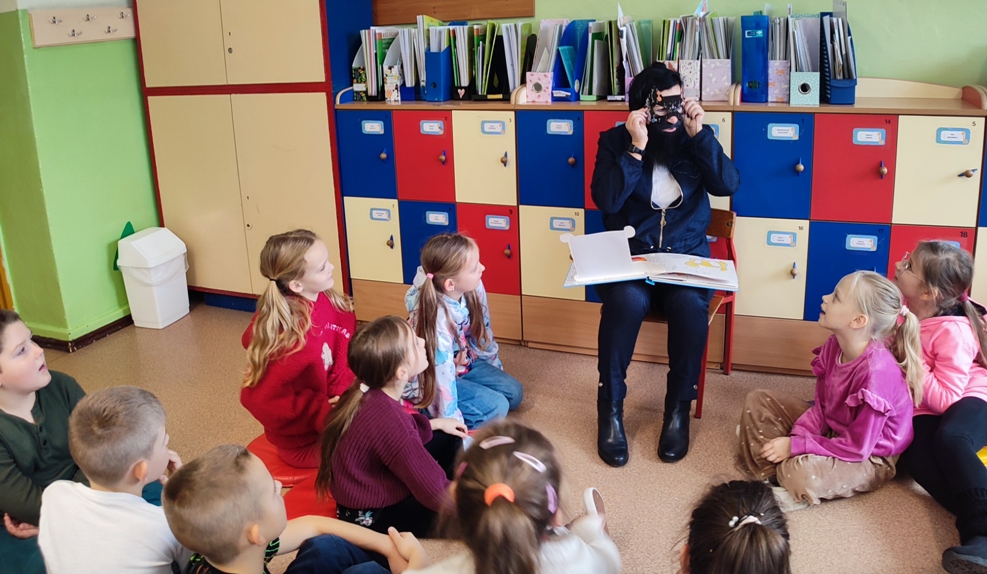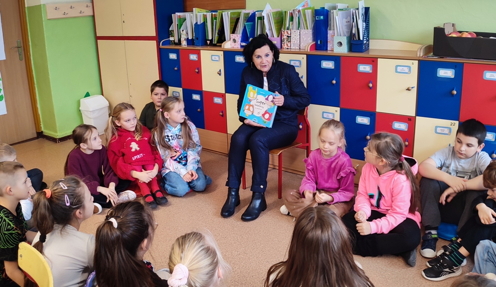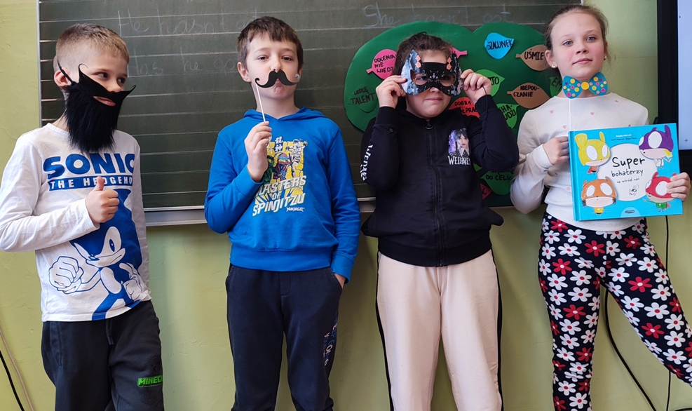 Klasa druga na czwartkowej lekcji  bibliotecznej przekonała się, że Superbohaterzy są wśród nas. Pomogła przy tym świetna książka Pop-Up. Ruchome, trójwymiarowe ilustracje, rozkładające się wzdłuż i wszerz strony, wyskakujące okienka - angażowały do słuchania opowieści malutkich czytelników i pobudzały ich wyobraźnię i ciekawość. Dzieci przekonały się, że PRAWDZIWI superbohaterowie naprawdę istnieją! Są nimi ludzie, którzy uczą innych  wielu nowych rzeczy- jak ich Wychowawczyni; codziennie gotują pyszności- jak ich mamy czy babcie; mają uśmiech i życzliwość dla wszystkich - jak... Przekonały się także, że jest tyle osób, które robią niezwykłe rzeczy, nie oczekując niczego w zamian i nie chwaląc się swoimi czynami. Superbohaterowie są skromni! Na zajęciach odczytaliśmy także supermoce z "Drzewa Mocy", a dzieci podnosiły ręce, kiedy miały tę konkretną MOC. Niektórzy prawie wcale nie opuszczali ręki!