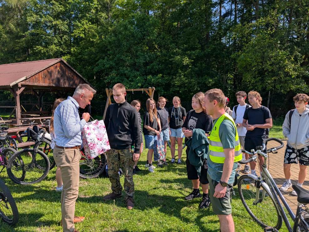 W dniu 13.06 br. uczniowie 8 klasy naszej szkoły wraz z opiekunami udali sie na wycieczkę rowerową do izby przyrodniczo-leśnej Nadleśnictwa Zawadzkie, gdzie mieli zaplanowane ognisko i rozgrywki w siatkówkę. Po drodze odwiedzili Zespół Szkół Specjalnych w Zawadzkiem i wręczyli jego podopiecznym drobne upominki. Dyrektor placówki-p. Artur Walkowiak w ciekawy sposób przybliżył przybyłym rowerzystom specyfikę szkoły oraz oprowadził po jej pomieszczeniach. Nie obyło się bez słodkiego poczęstunku, czym zostaliśmy bardzo mile zaskoczeni. Ognisko również się udało i wszystkie zapasy w plecakach zostały zjedzone. Tak posileni udalismy sie w drogę powrotną przy pieknej, słonecznej pogodzie. Dyrekcji i wychowawcom Zespołu Szkół Specjalnych dziękujemy za gościnę i życzymy sukcesów wychowawczych a naszym podopiecznym bezpiecznych dróg podczas wakacyjnych wyjazdów na dwóch kółkach:)