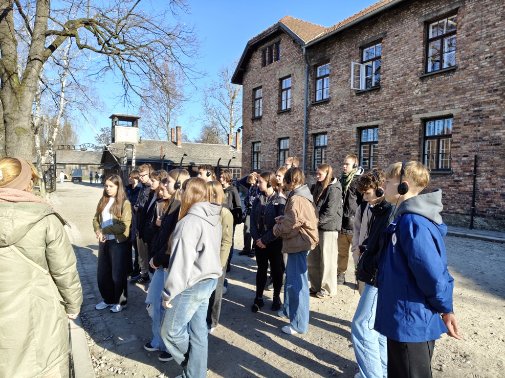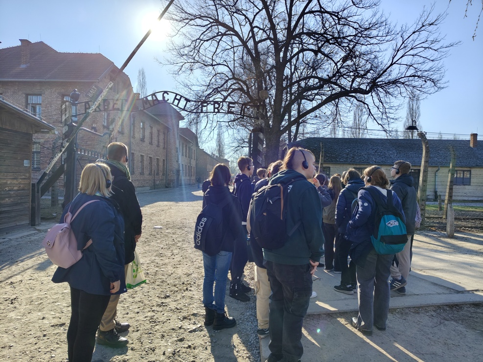 Pierwszym etapem naszej wycieczki był Oświęcim. Uczniowie, oprowadzani przez znakomitego przewodnika, zwiedzili największe cmentarzysko świata- muzeum na terenie byłego obozu koncentracyjnego Auschwitz- Birkenau. Z powagą poznawali historię tego miejsca oraz ich często bezimiennych mieszkańców- więźniów. Należy podkreślić fakt, że nasi wychowankowie poruszeni oglądanymi ekspozycjami, snuli osobiste refleksje, pytali, dociekali, dzielili się wiedzą z pozostałymi uczestnikami wycieczki. Potrafili pięknie się zachować, na co zwrócili uwagę przewodnicy. Holocaust jest wyjątkowym wydarzeniem i ważnym jest, aby nasi uczniowie potrafili je ocenić oraz rozumieć, gdyż fakt istnienia obozów koncentracyjnych był tragedią o niespotykanej skali.