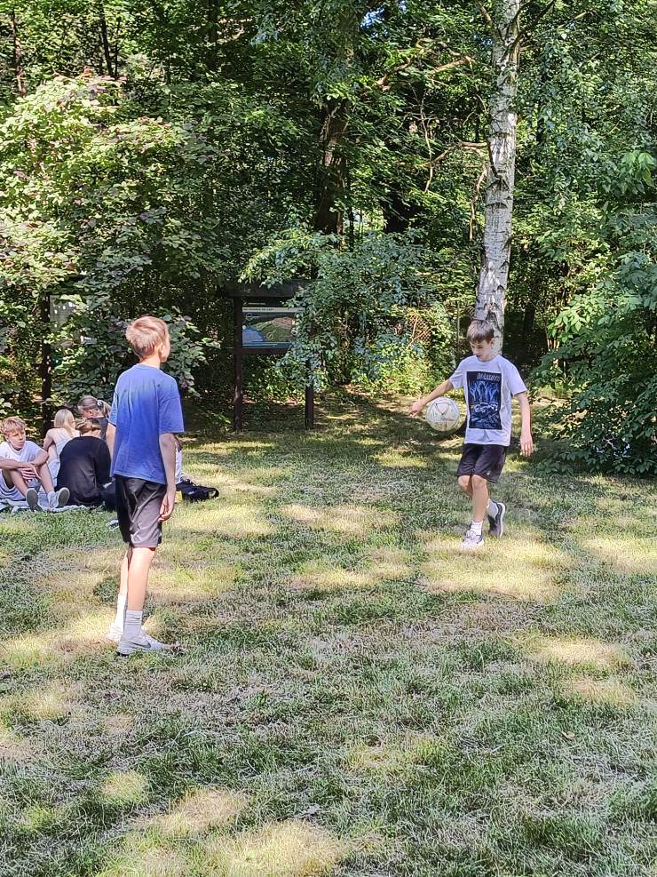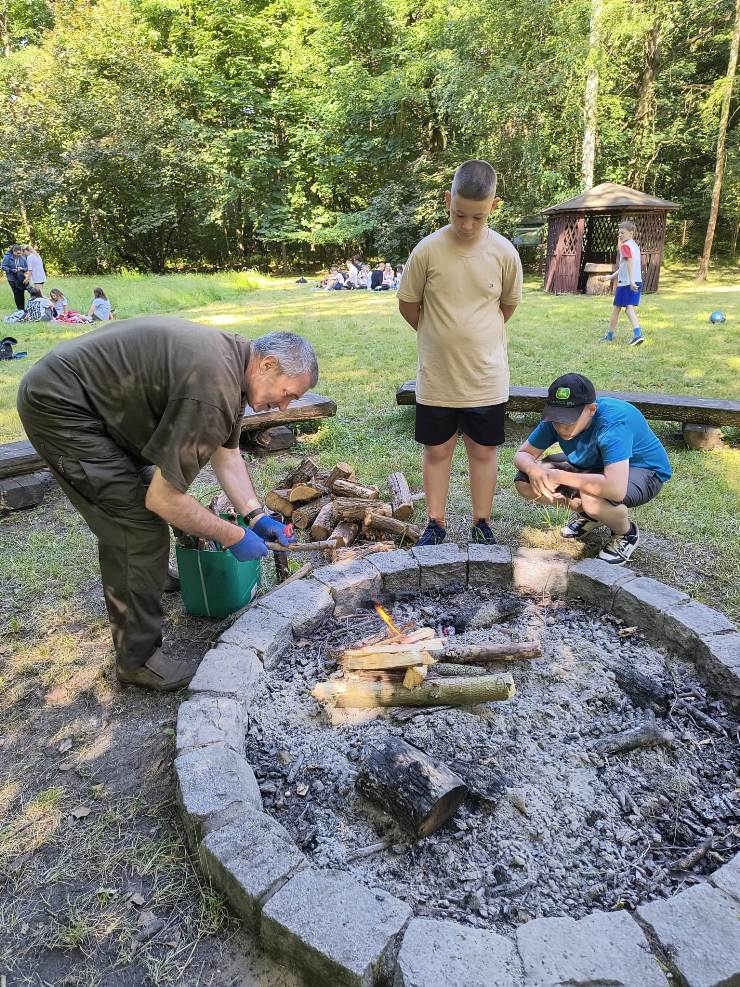 W dniu 25.06.2025 uczniowie klasy 5a i 7a wybrali się na pieszą wycieczkę do Nadleśnictwa Krasiejów. Nasza grupa została przywitana przez leśniczego, który przygotował nam ognisko oraz zademonstrował jak w poprawny i szybki sposób prawidłowo je rozpalić. Świeże powietrze nasycone zapachem drzew i ziemi sprawiło, że od razu poczuliśmy się zrelaksowani. W trakcie pobytu uczniowie spędzili czas na grach i zabawach, oraz pieczeniu kiełbasek na ognisku. Była to wspaniała okazja do integracji i budowania relacji.