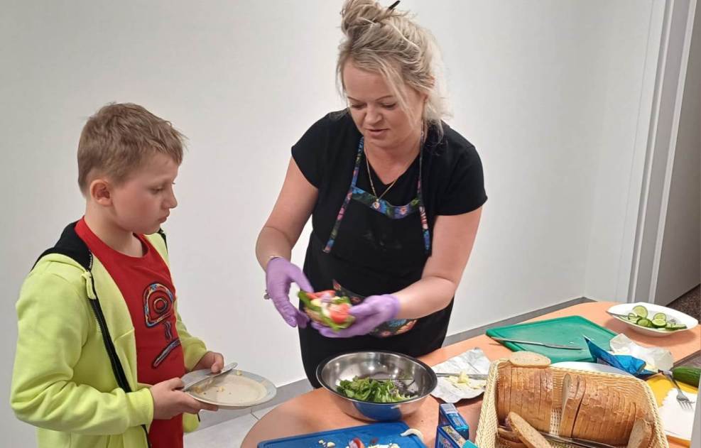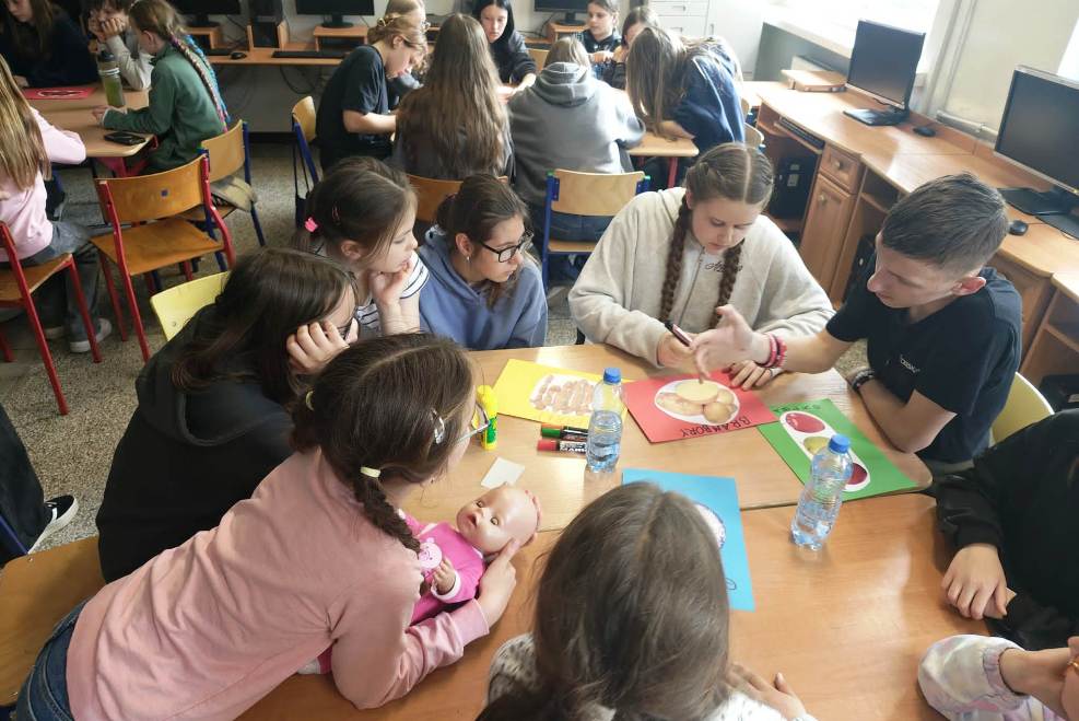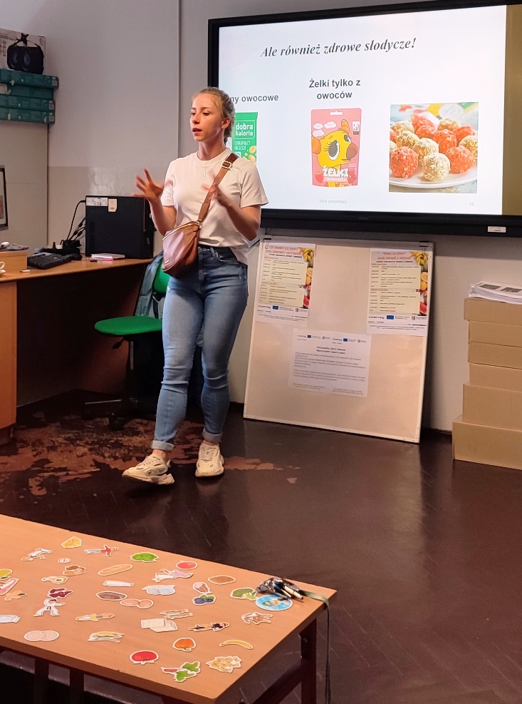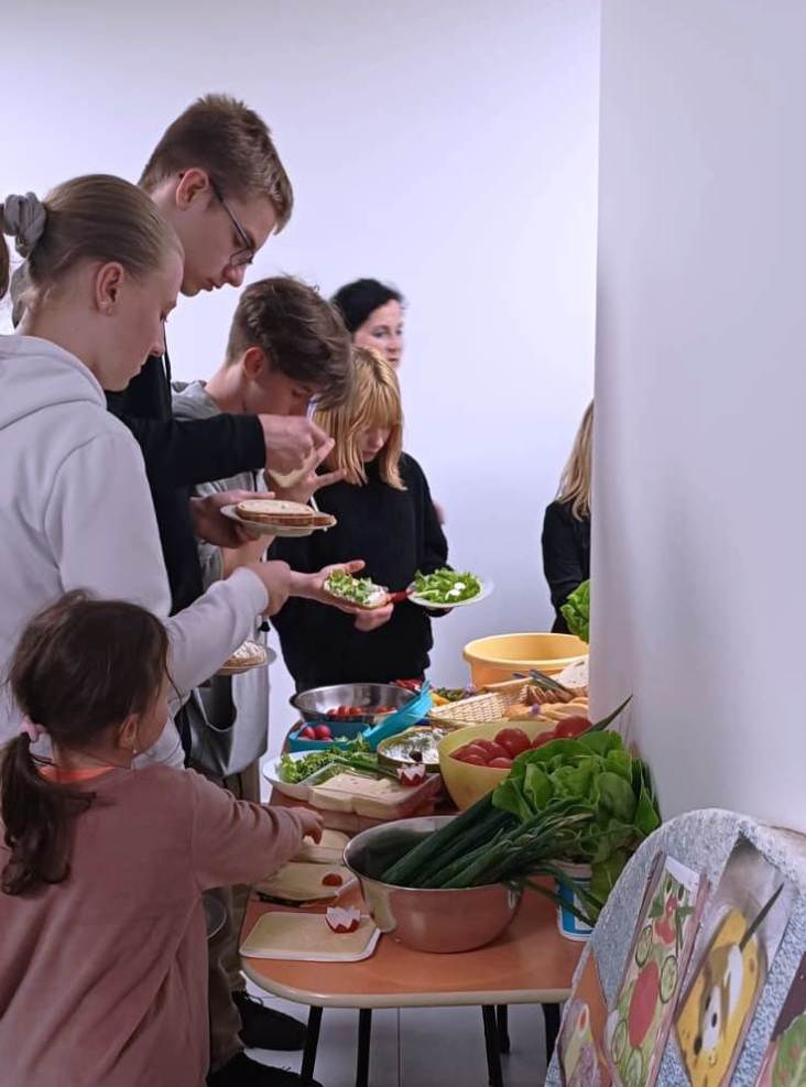 Za nami pierwszy dzień międzynarodowego projektu "Czy wiemy, co jemy? - czyli zdrowo i aktywnie". Piątkowy dzień obfitował w warsztaty na temat zdrowego odżywiania, zdrowych produktów, ilości posiłków, zasad zdrowego żywienia. Była prezentacja na temat zdrowego stylu życia. Młodzież zrobiła "Jadłospis na 6" korzystając z podpowiedzi na planszach. Każdy ten jadłospis zabierze do domu i będzie mógł przygotowywać posiłki wg zdrowych zasad.  Odbyło się bardzo ciekawe spotkanie z dietetyczką,  Panią Joanną Lewandowską, która nie tylko przekonywała młodzież do zdrowego sposobu odżywiania, ale także przekazała wiele cennych rad, odpowiadając na pytania. Były także przeróżne ciekawostki żywieniowe, a także porady i  zalecenia, np. dotyczące ustalenia prawidłowej ilości wody, którą należy nawadniać organizm w ciągu dnia. Odbył się także  konkurs polsko - czeski, na zapamiętanie nazw popularnych produktów, warzyw i owoców w obu językach. Uczniowie w szkolnej stołówce przygotowali sobie zdrowe kanapki, każdy według swojego gustu i smaku. Pomagała w tym Pani Ewelina Czaczkowska - prawdziwa czarodziejka kucharskiego rzemiosła. Po kolacji odbyły się integracyjne gry i zabawy w sali gimnastycznej, które dostarczyły dużo radości i śmiechu. Było więc i zdrowo, i aktywnie!