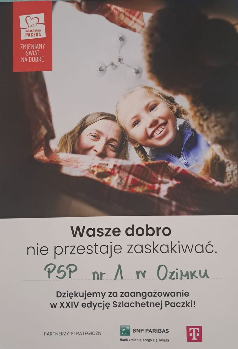 W tym roku nasza szkoła przyłączyła się do zbiórki darów w ramach akcji „Szlachetna paczka”. Inicjatorką zbiórki w szkole była Pani Joanna Lewandowska- mama Marysi. Odpowiadając na potrzeby rodziny zebraliśmy żywność oraz środki czystości. Przygotowane i pięknie zapakowane paczki trafiły do pani Ewy z Ozimka.